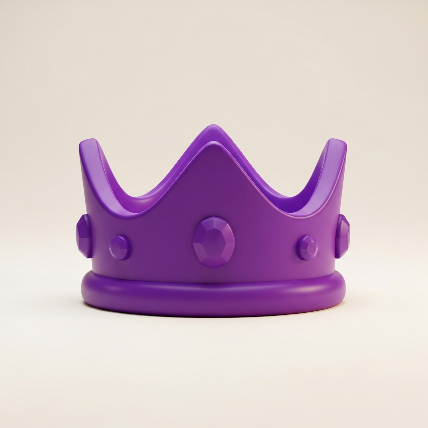 A glossy purple crown with gem-like decorations on a neutral background, showcasing a playful and modern design.