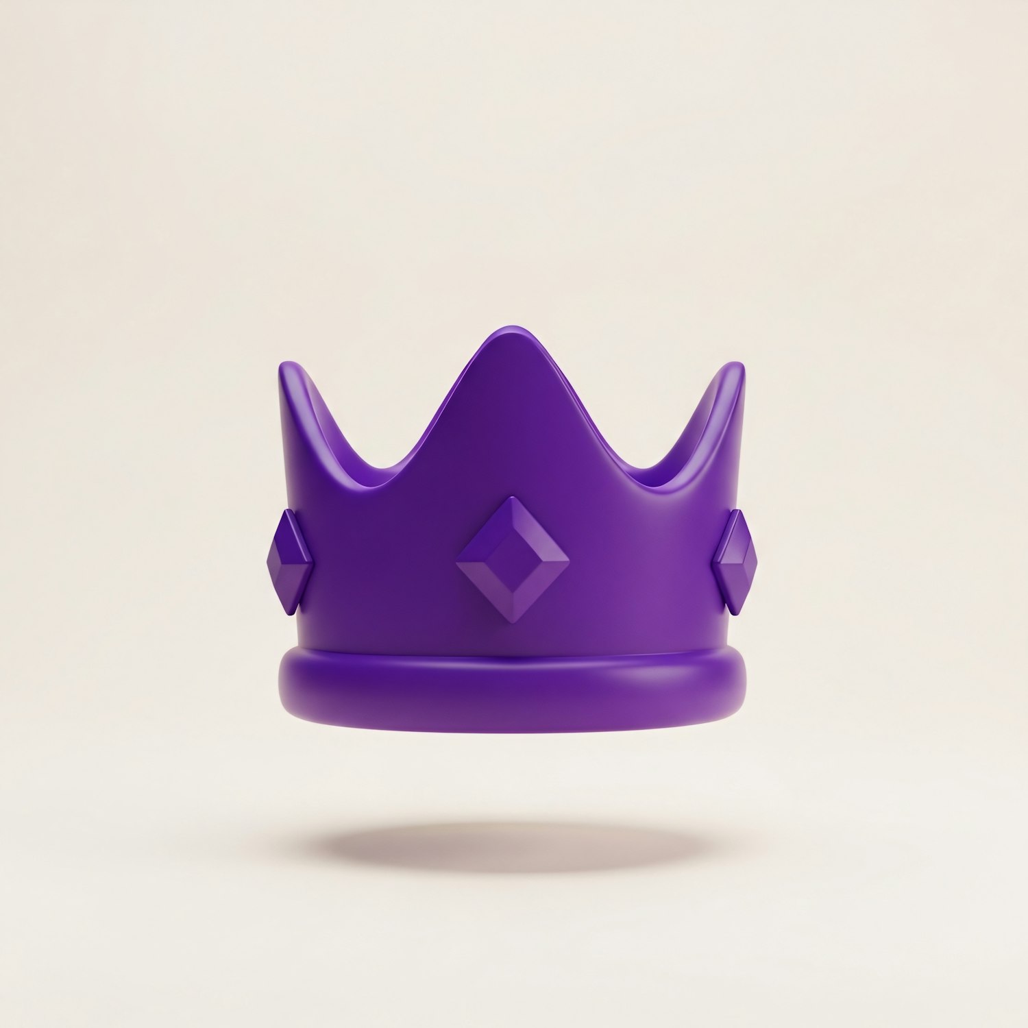 A sleek purple crown with a modern design, featuring diamond-shaped accents, floating against a neutral background.