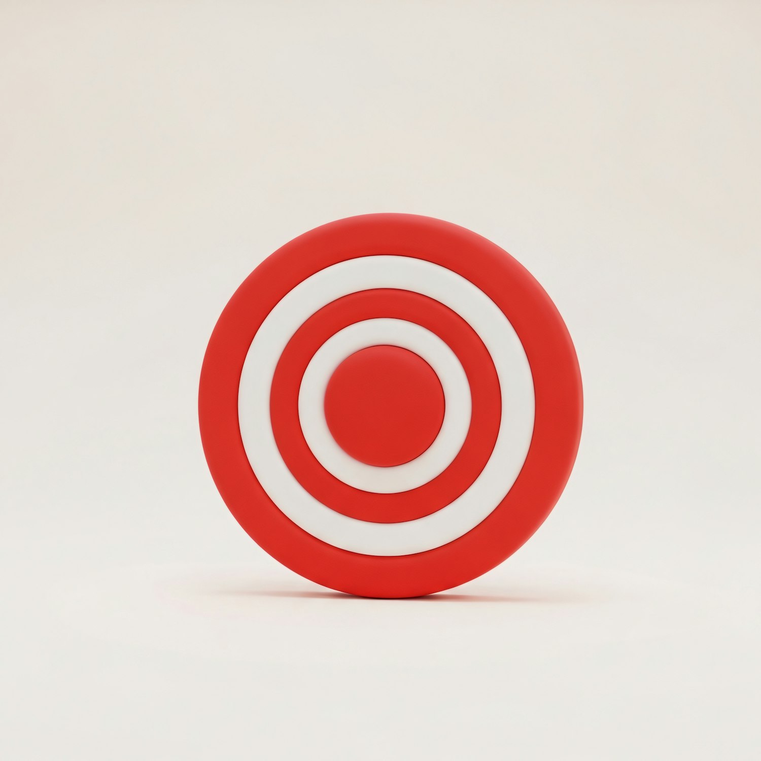 A red and white circular target design on a smooth surface, set against a plain light background, showcasing bold and clean lines.
