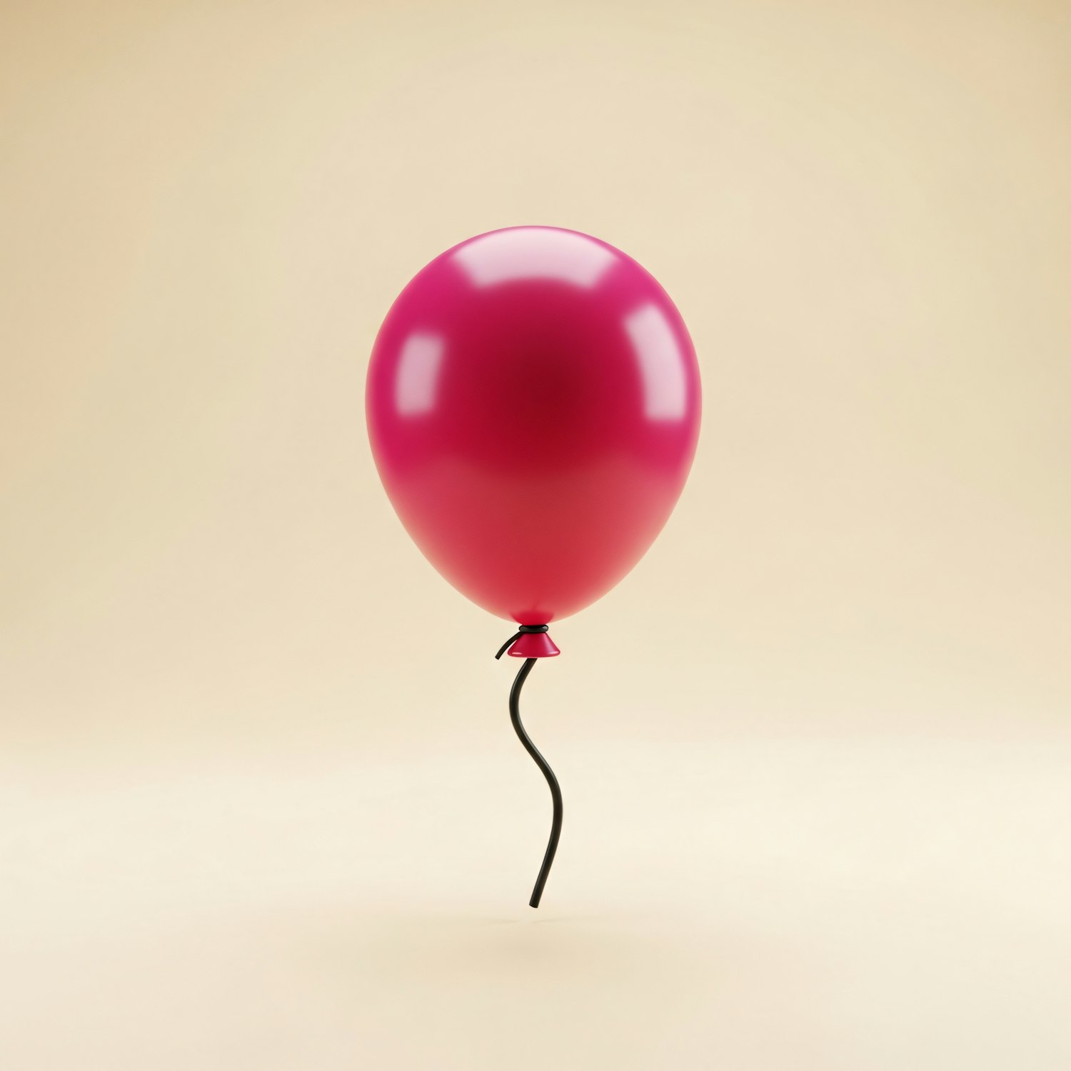 A vibrant red balloon with a black string against a beige background, showcasing a minimalist and striking composition.