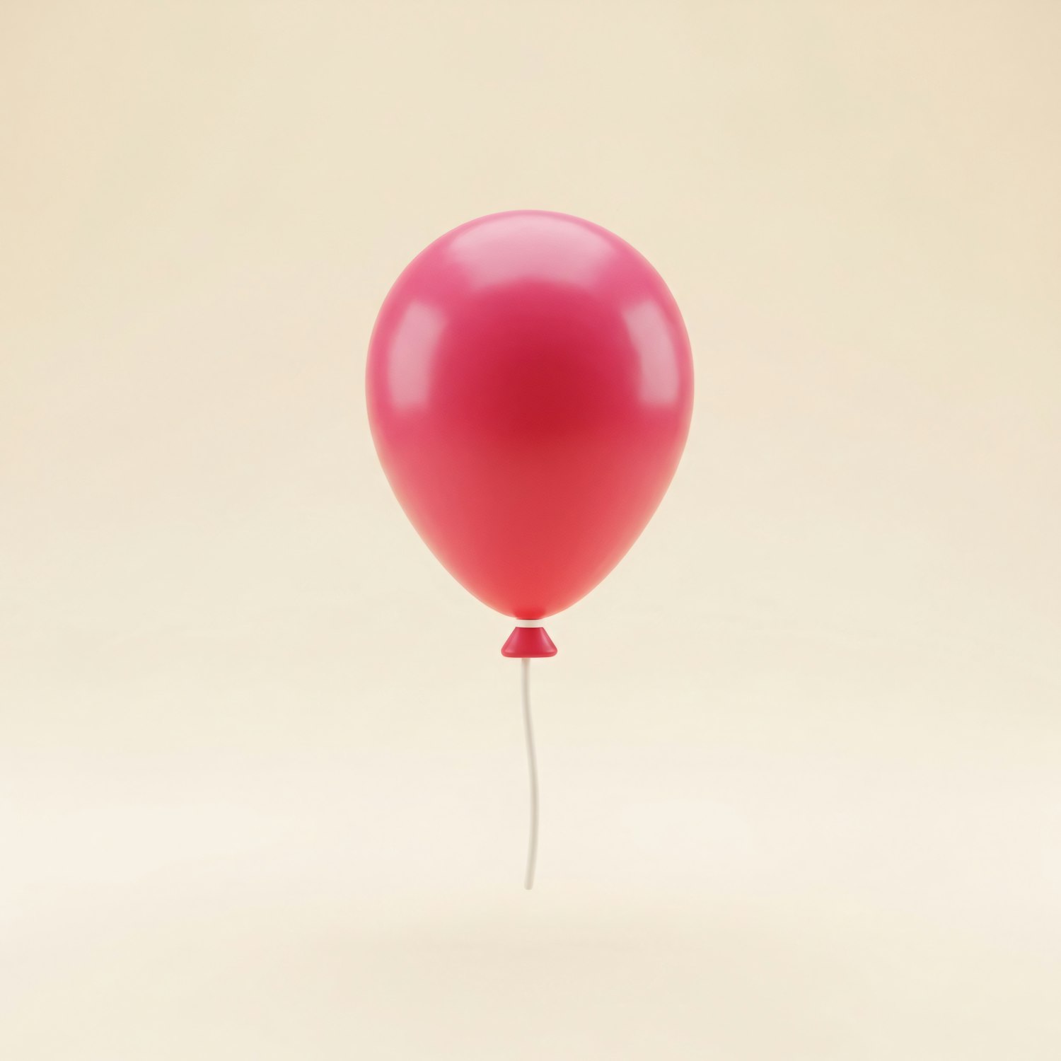 A vibrant red balloon with a glossy finish floats against a soft beige background, creating a minimalistic and cheerful composition.