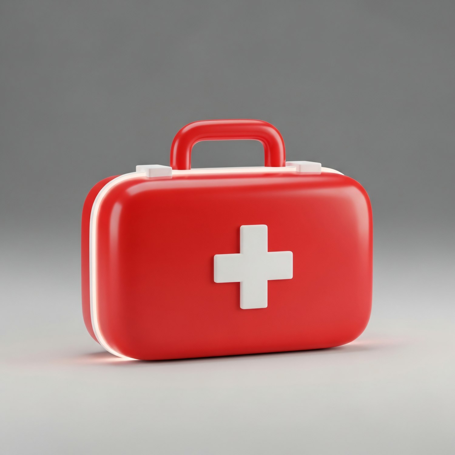 A red first aid kit with a white cross symbol, set against a neutral background, showcasing its clean and professional design.