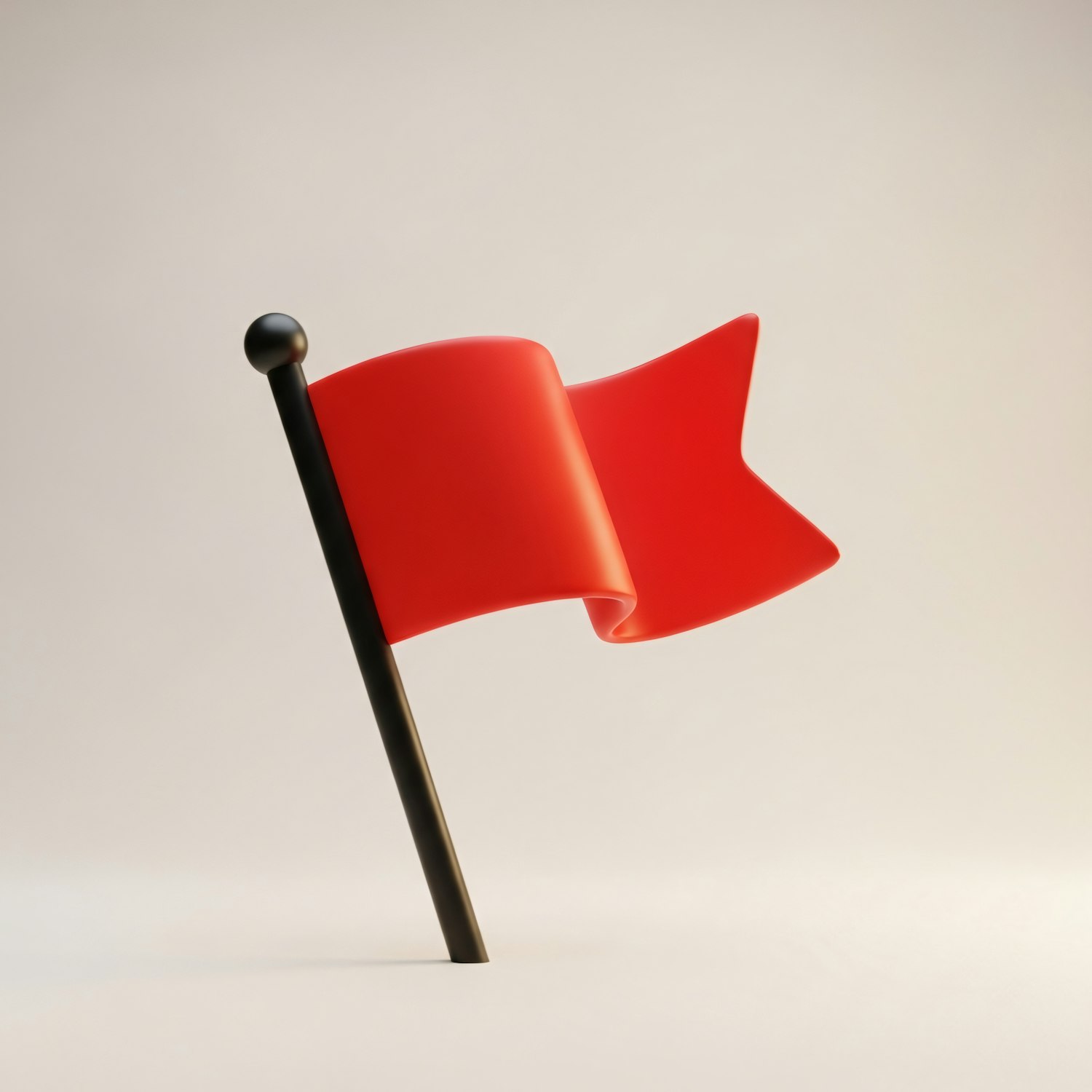 A sleek 3D rendering of a red flag on a black pole, set against a neutral background, showcasing a clean and modern design.