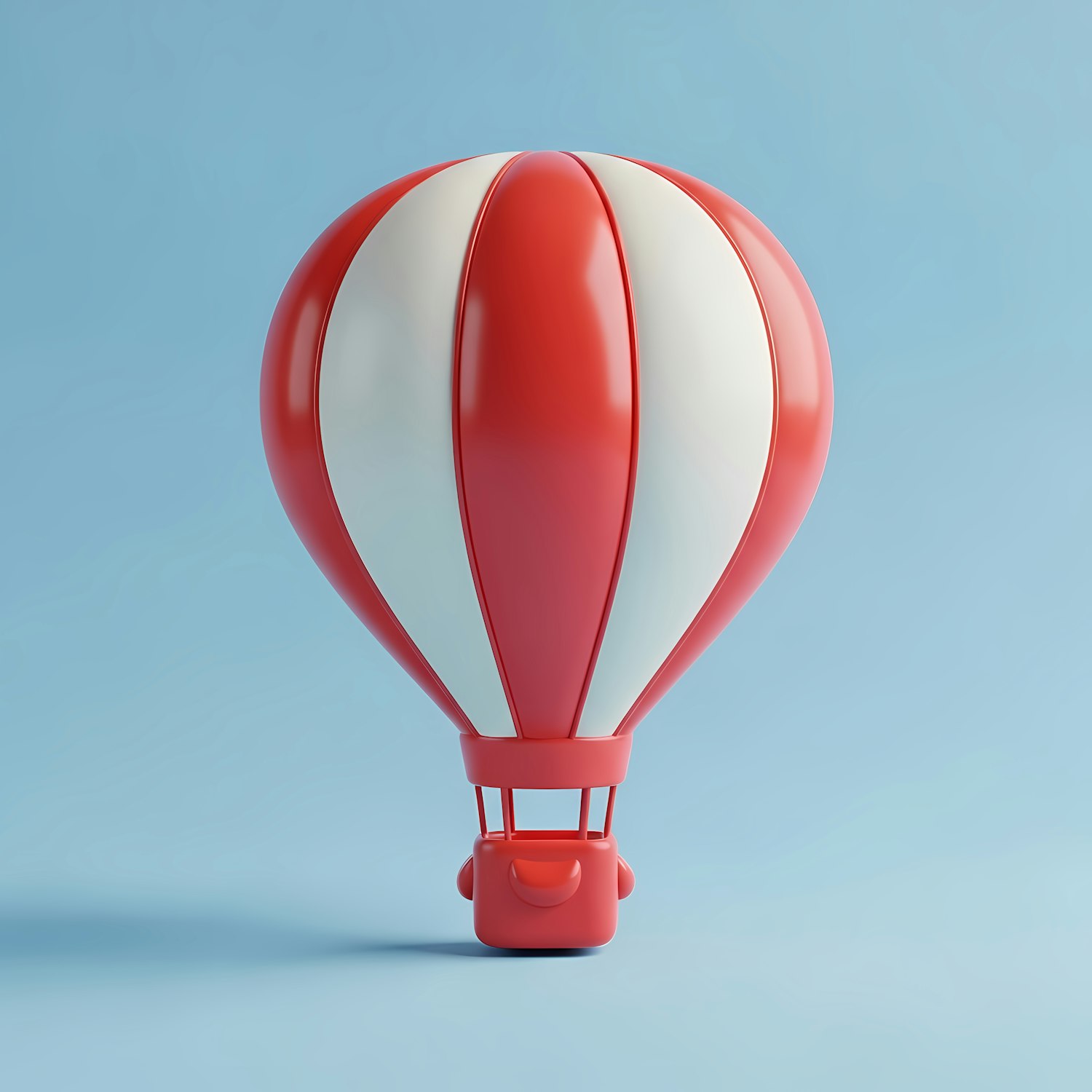 A vibrant 3D-rendered red and white hot air balloon on a light blue background, perfect for whimsical or travel-themed designs.