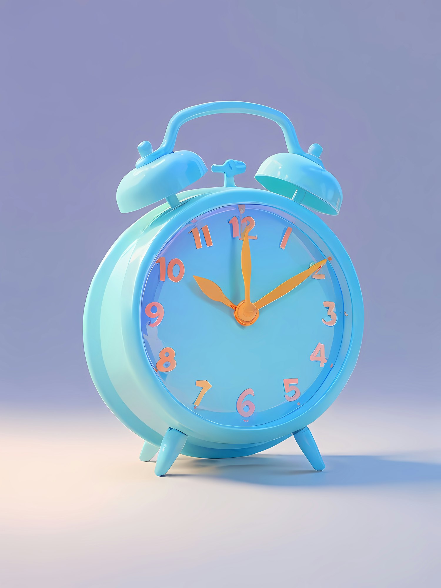 Bright blue retro alarm clock with orange accents, set against a soft gradient background. Perfect mix of vintage charm and modern design.