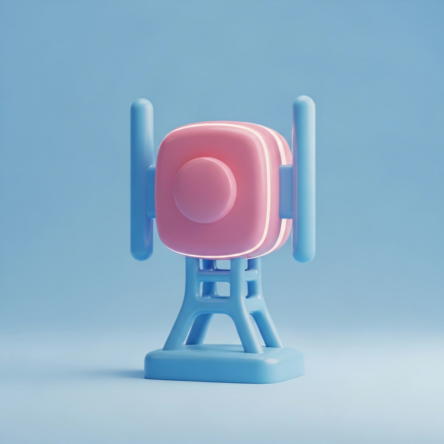 A vibrant 3D-rendered pink and blue retro-style object on a light blue background, showcasing a clean and minimalistic design.
