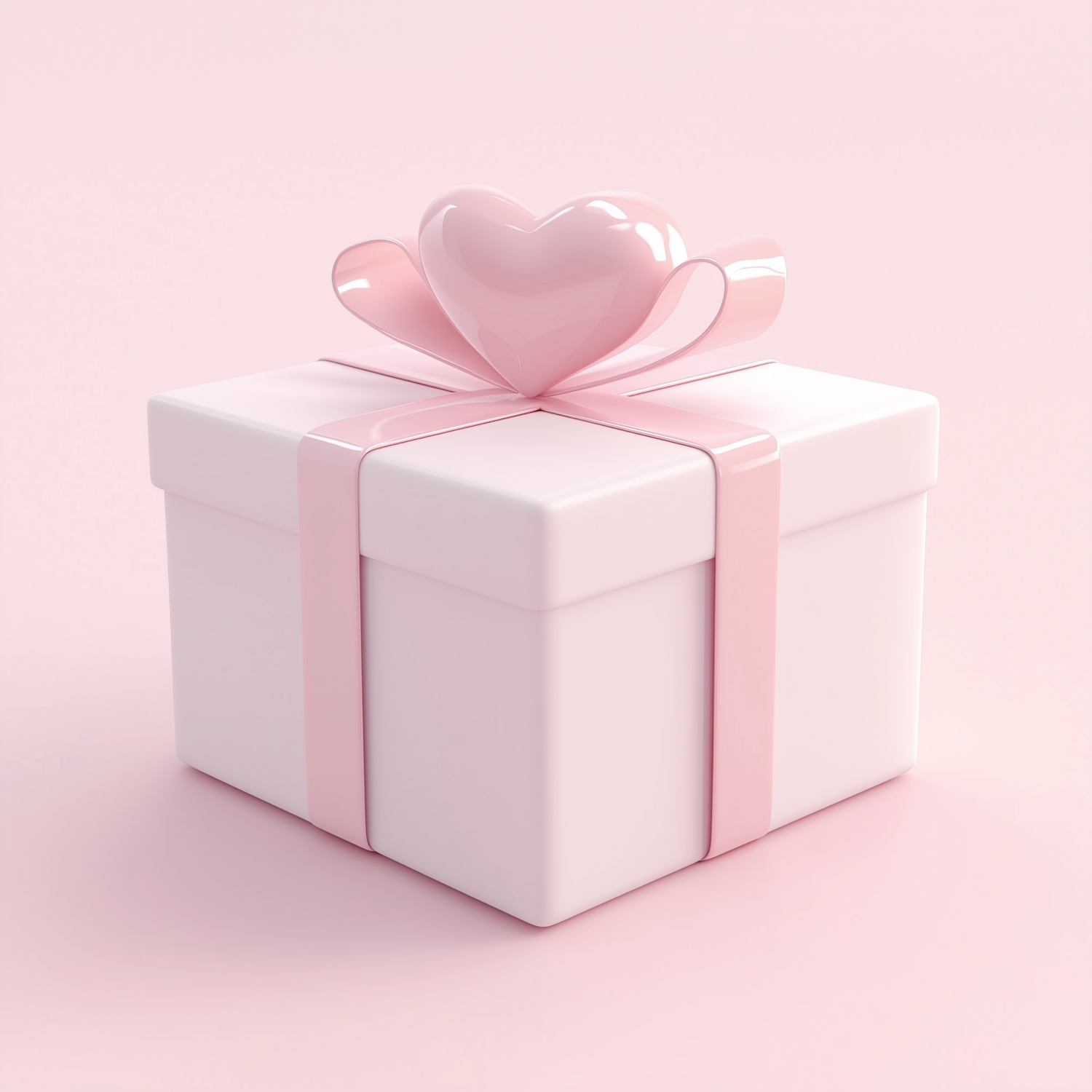 A pastel pink gift box with a heart-shaped bow, perfect for romantic occasions like Valentine's Day or anniversaries.