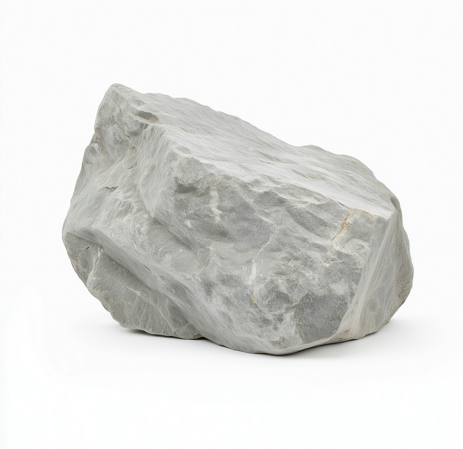 A large, light gray rock with a rough texture against a plain background, showcasing natural contours and subtle color variations.