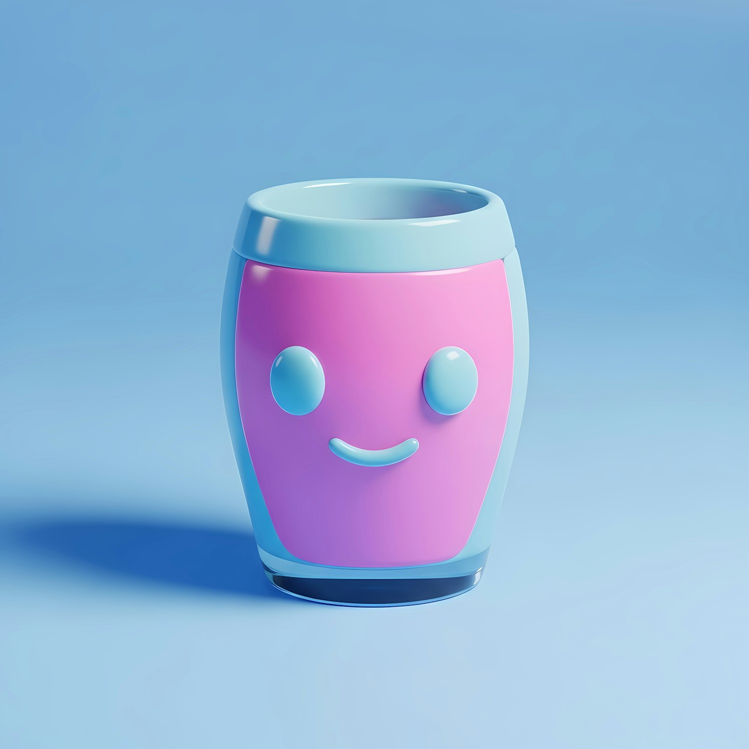 Adorable pink and blue cup with a smiling face design, set against a light blue background. Perfect for a cheerful vibe!