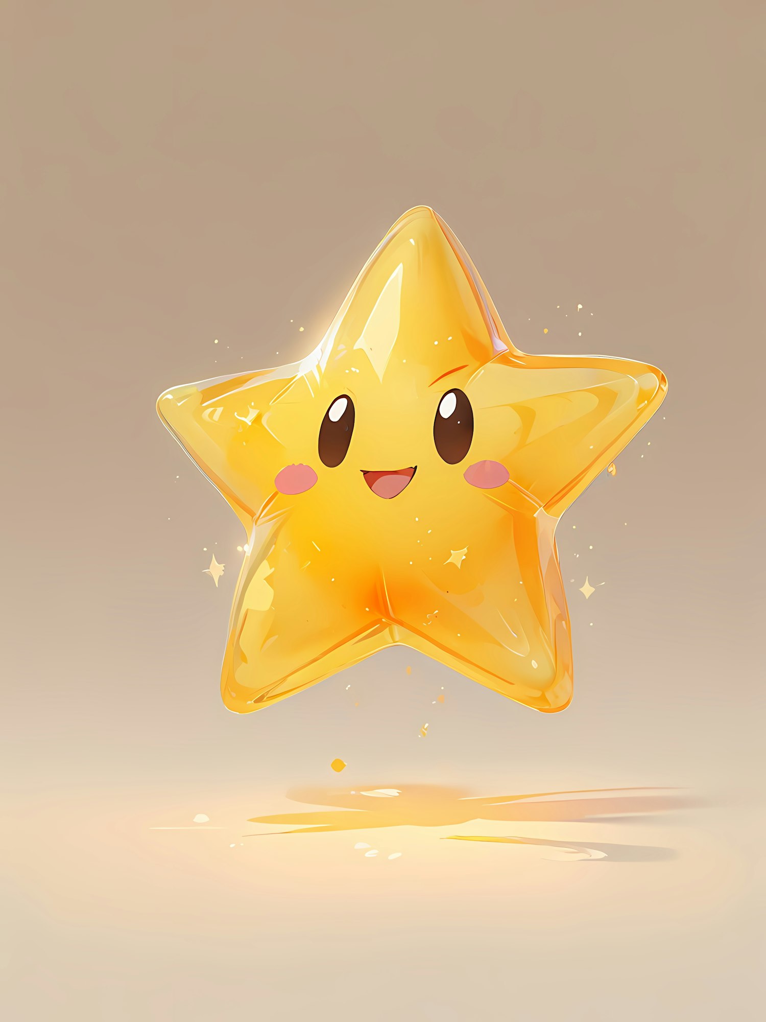 Adorable glossy golden star with a smiling face, floating on a soft beige background. Perfect for whimsical and magical themes.