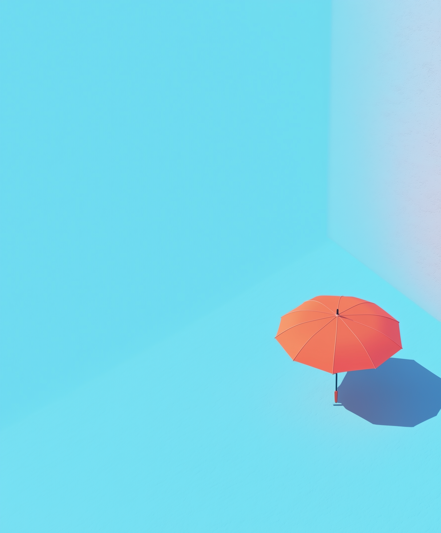 Minimalist orange umbrella on a bright blue surface with sharp shadows, creating a bold and modern color contrast.
