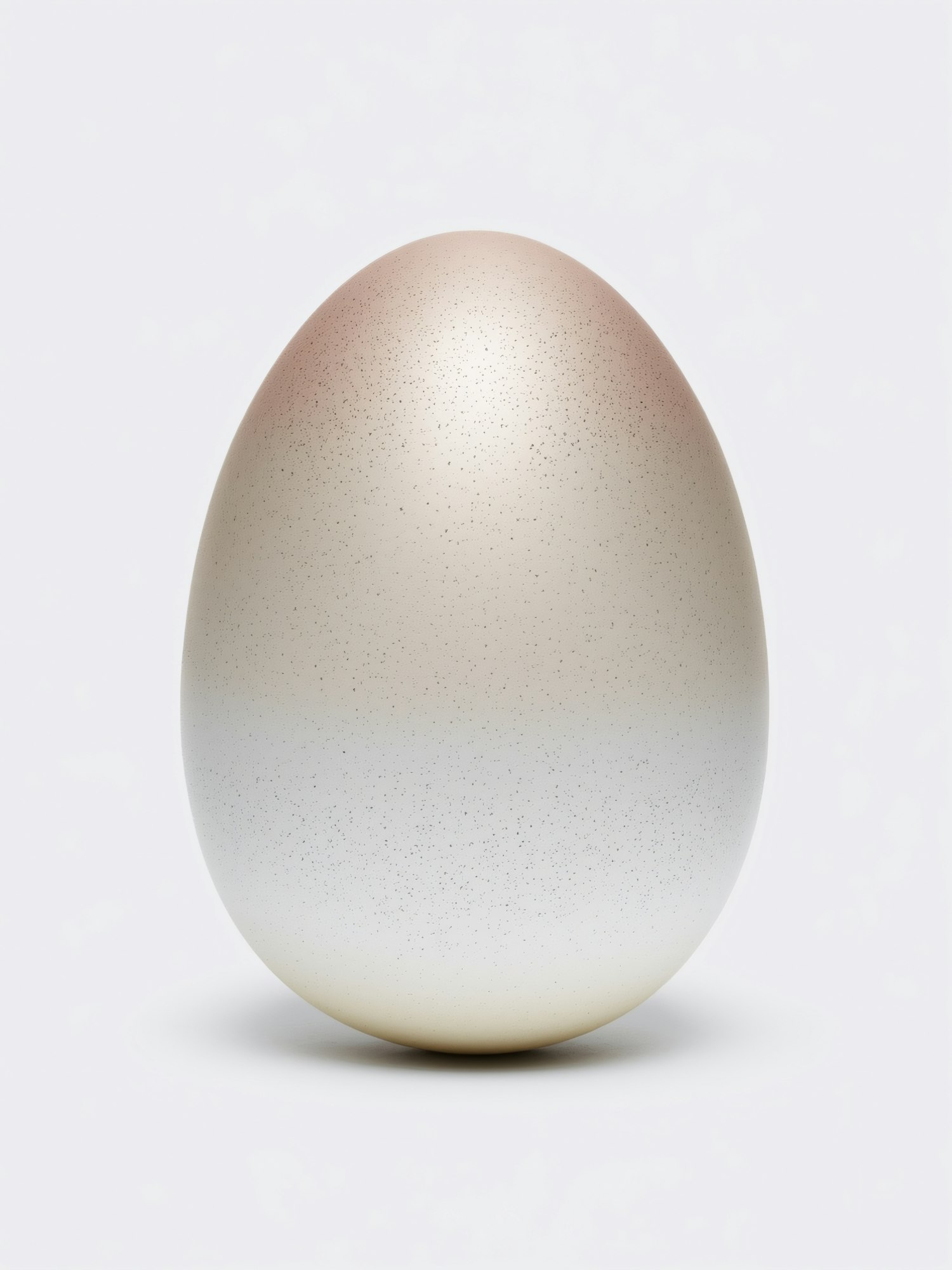 A smooth, speckled egg with a beige-to-pink gradient, centered against a white background, showcasing its natural texture and color.