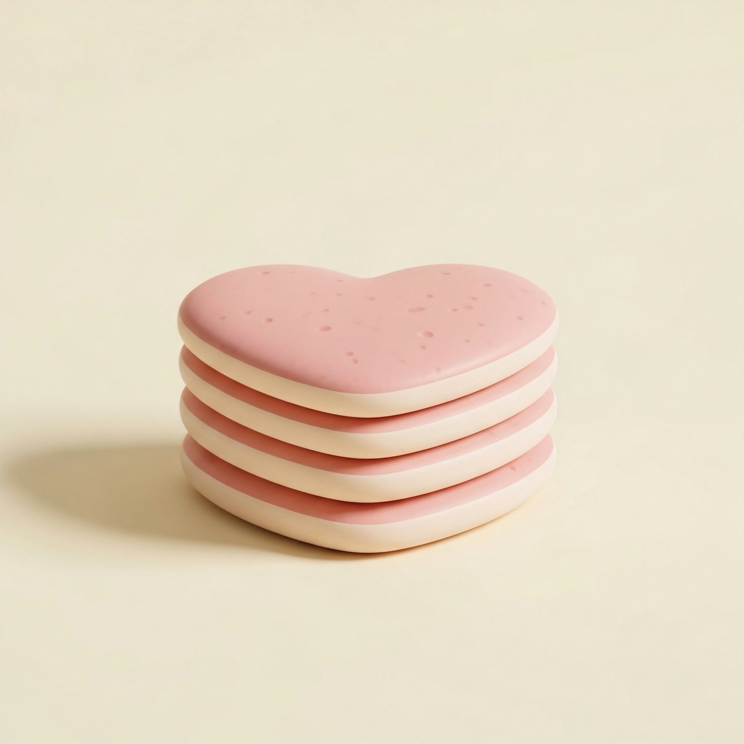 A stack of pastel pink heart-shaped items with white edges on a beige background, showcasing a clean and minimalistic design.