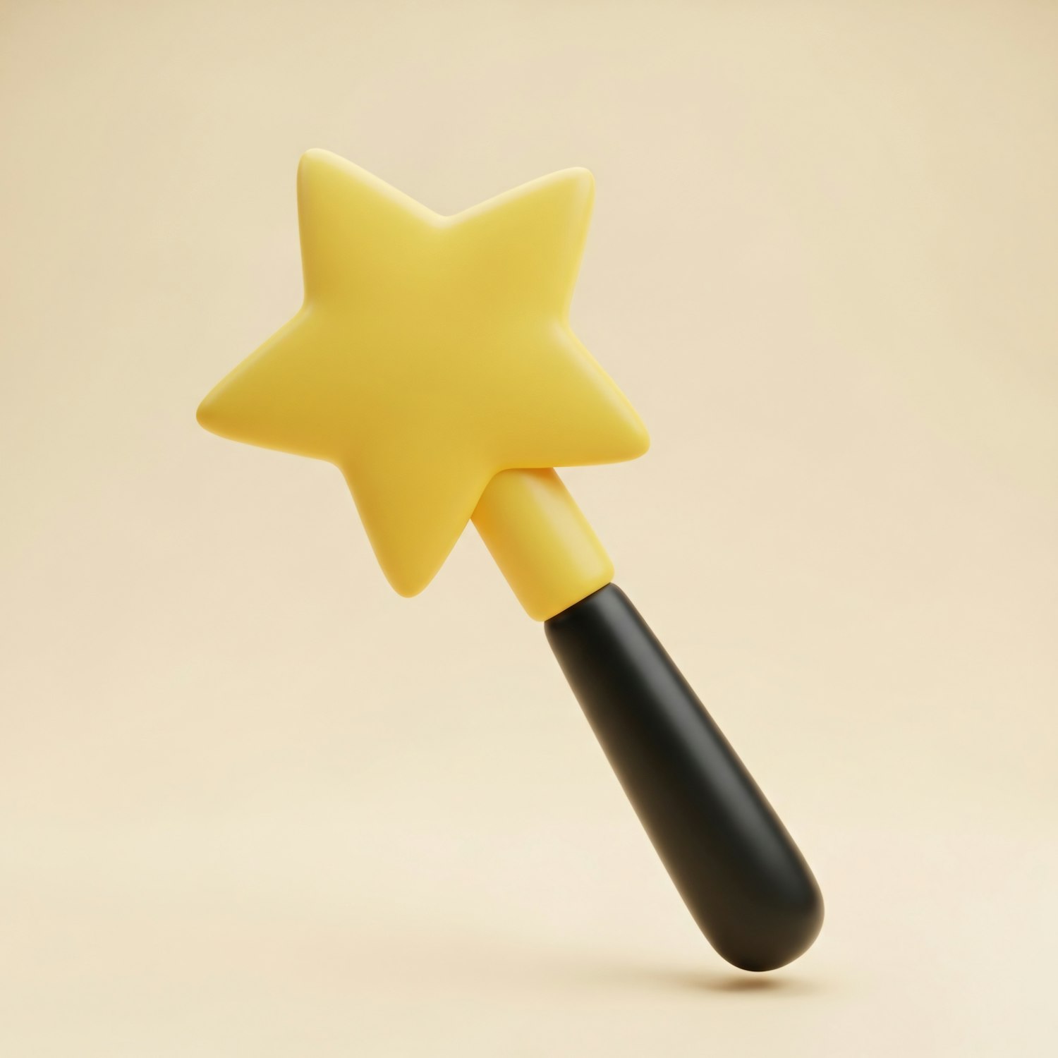 A yellow star-shaped object with a black handle, set against a beige background, showcasing a minimalist and playful design.
