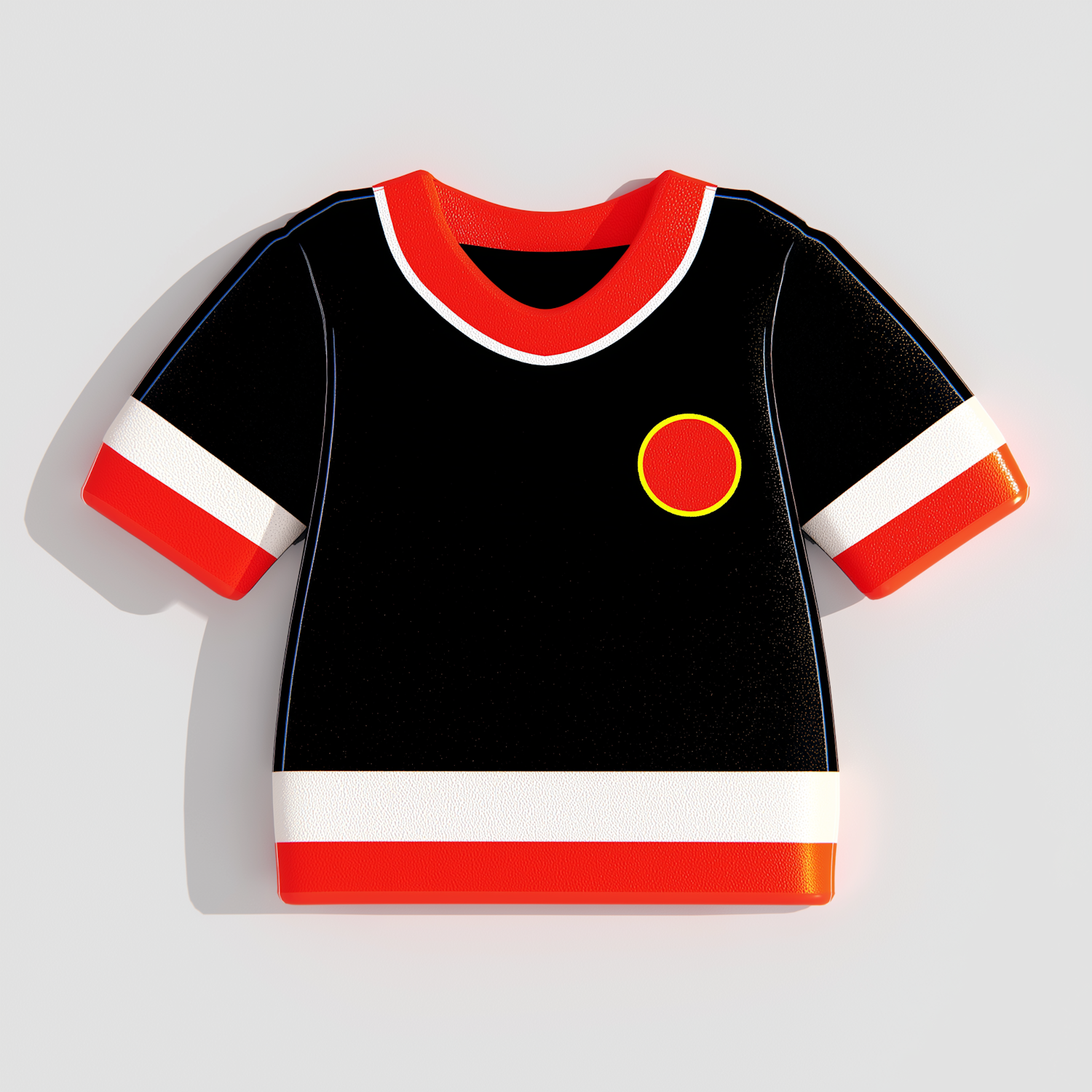Black jersey with red collar, white and red sleeve accents, and a circular red-yellow chest emblem on a clean background.