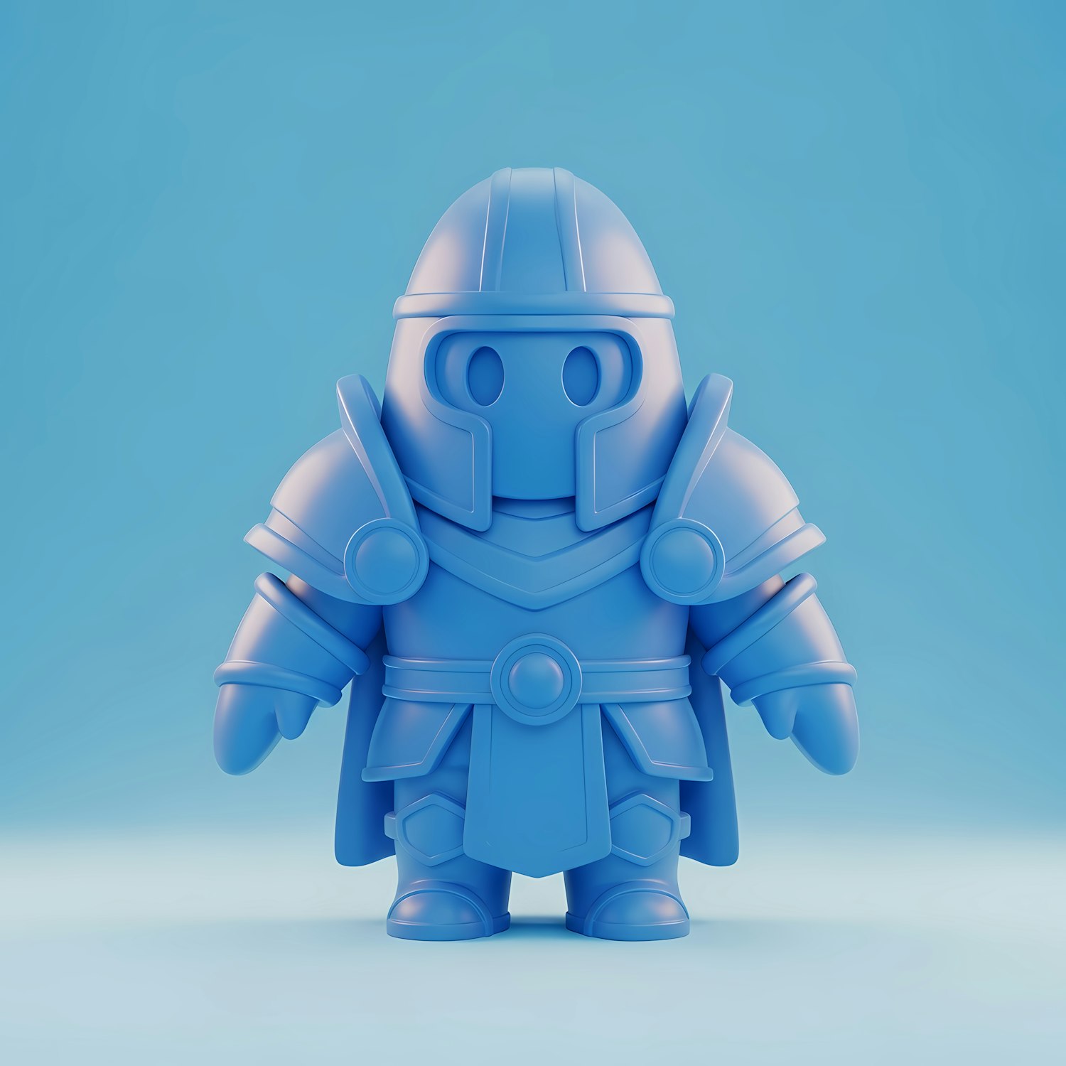 A cute 3D-rendered blue knight figure with a cartoonish design, standing against a light blue background. Perfect for gaming or toy concepts.