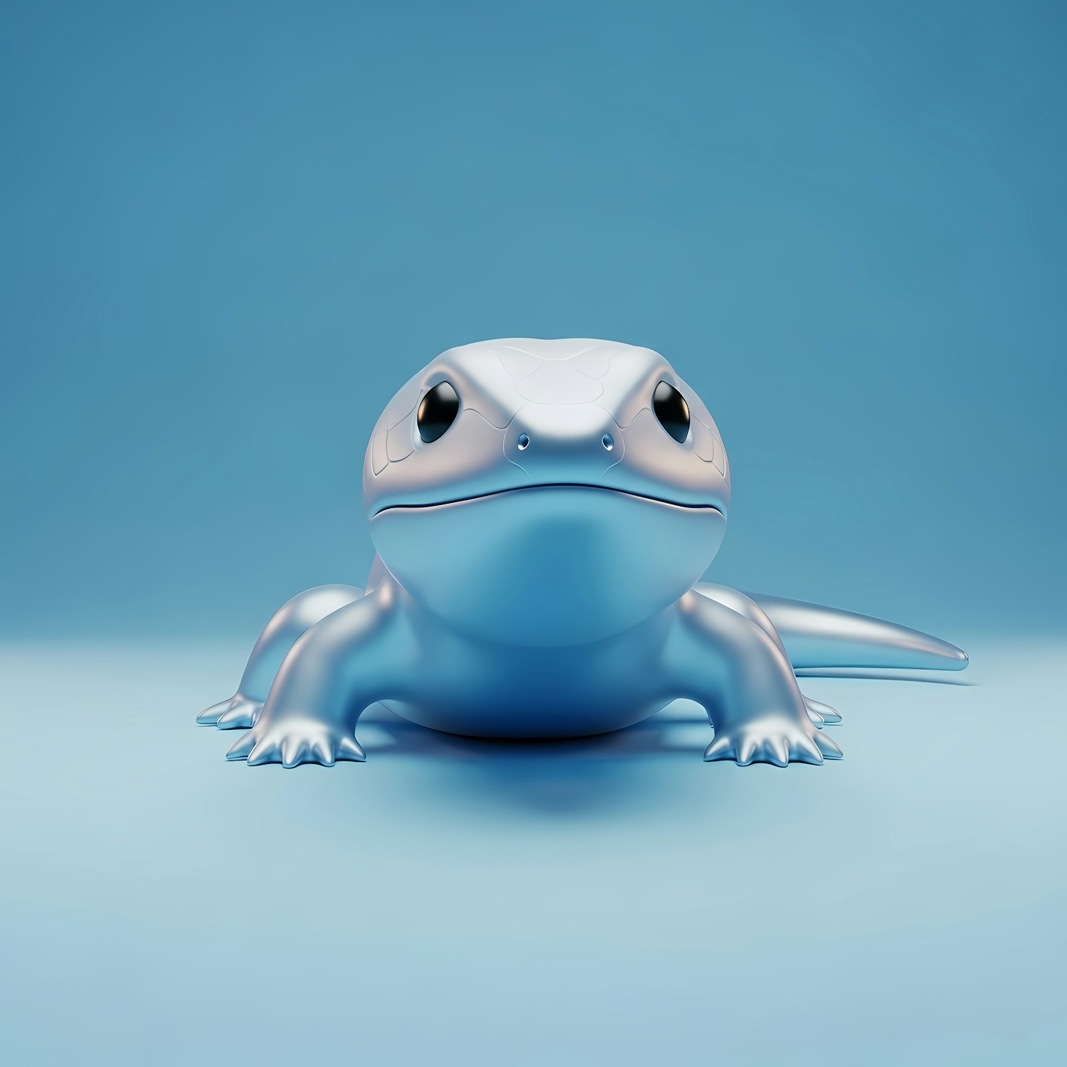 A cute 3D-rendered blue lizard with a shiny surface, set against a gradient blue background, showcasing its cartoonish and friendly design.