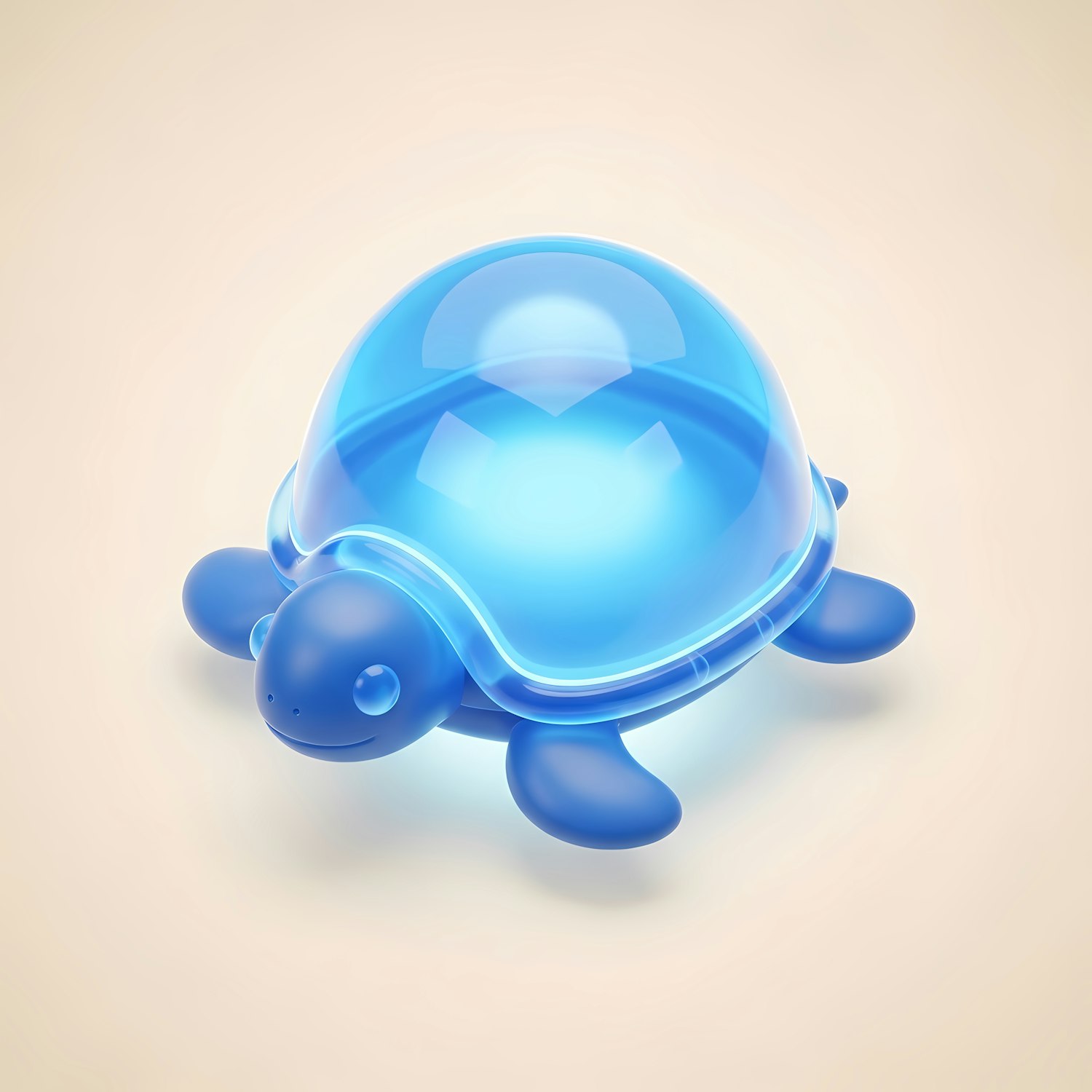 A cute 3D-rendered turtle with a glossy blue shell on a soft beige background, showcasing a modern and playful design.