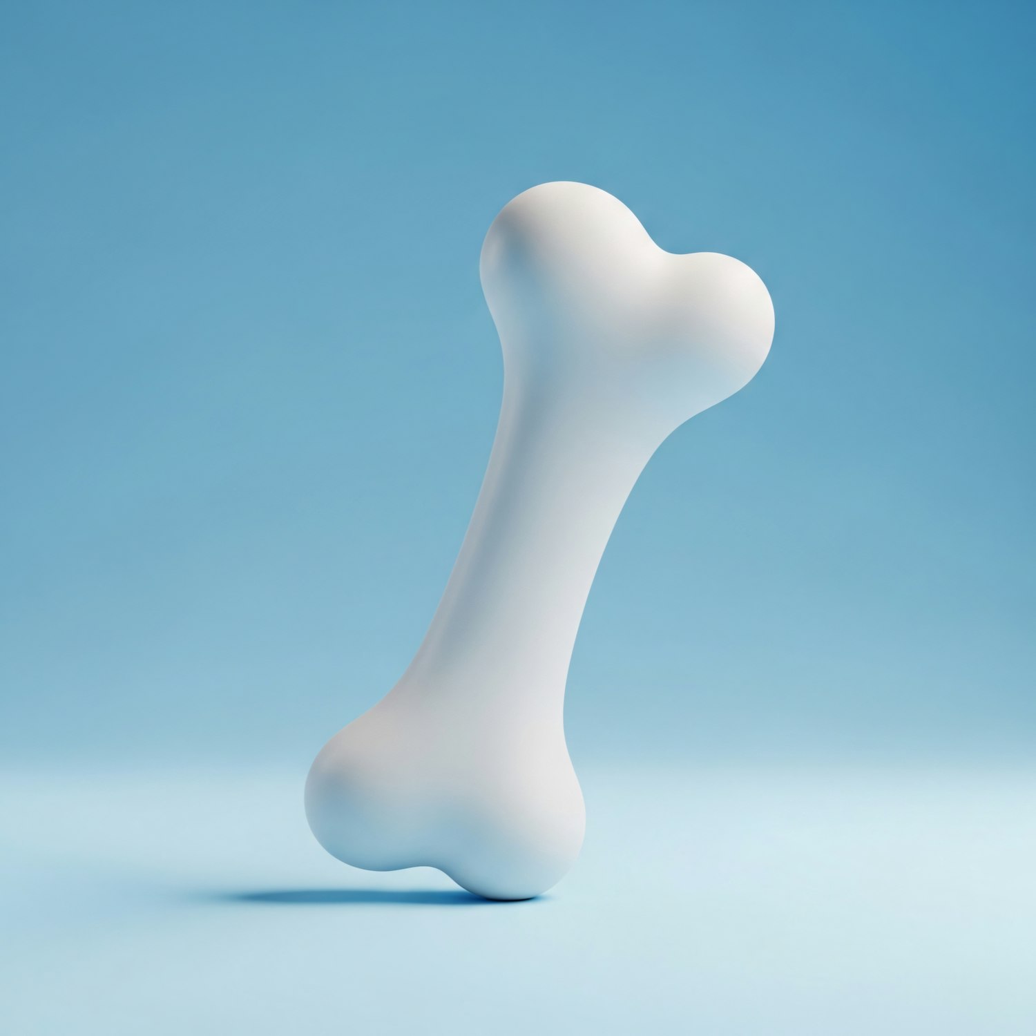 A sleek, white bone-shaped object stands against a gradient blue background, showcasing a clean and modern design.