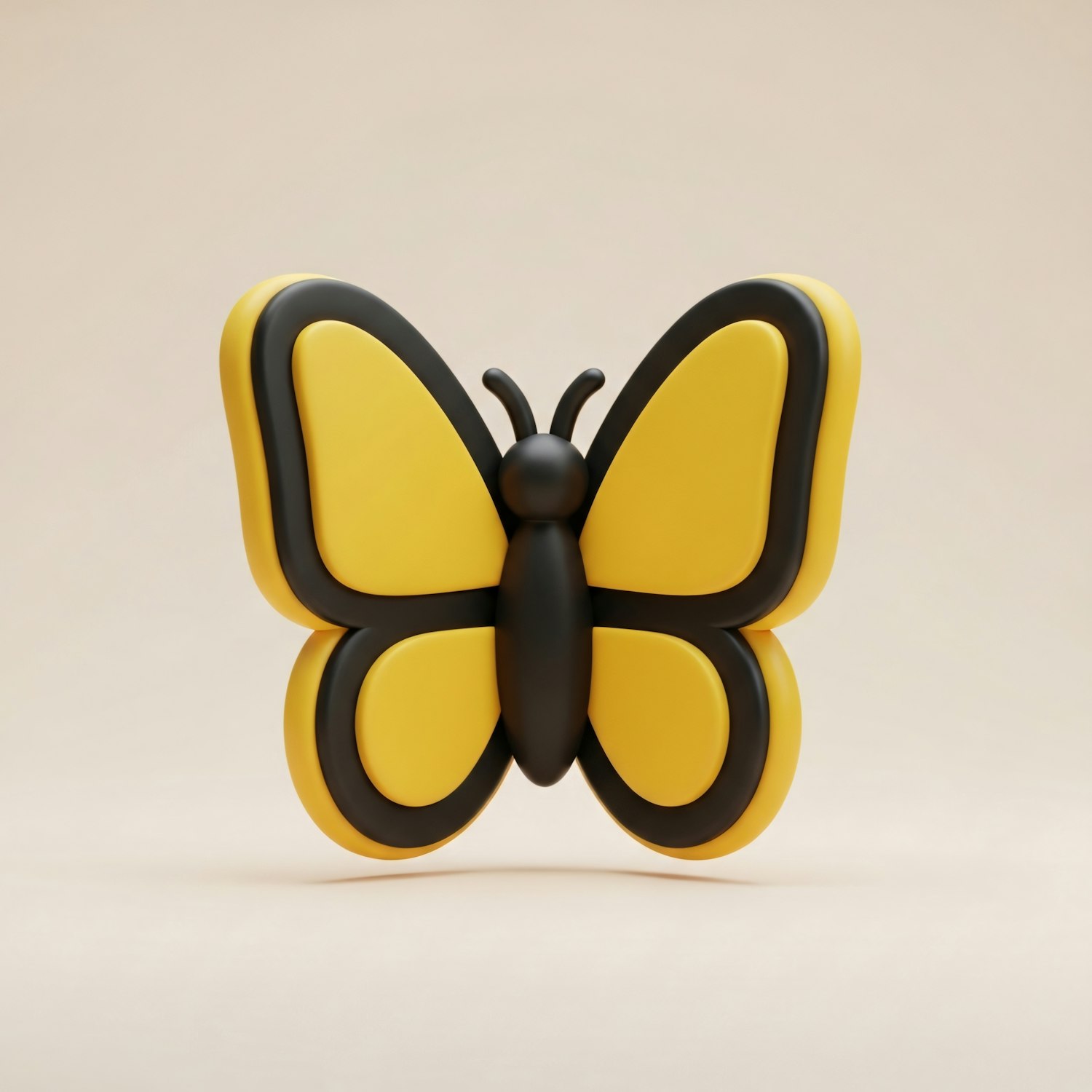 A 3D-rendered butterfly with yellow and black wings on a neutral background, showcasing a clean and modern design.