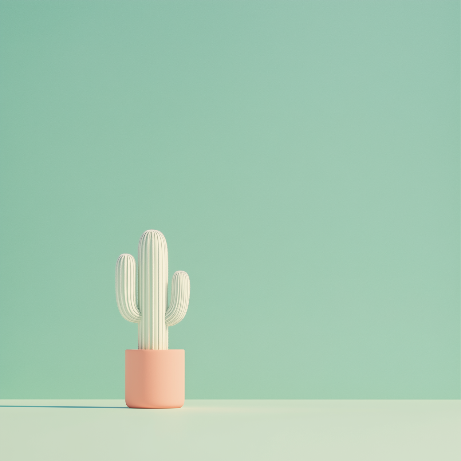 Minimalist cactus in a pastel pink pot against a mint green background, creating a serene and modern aesthetic.