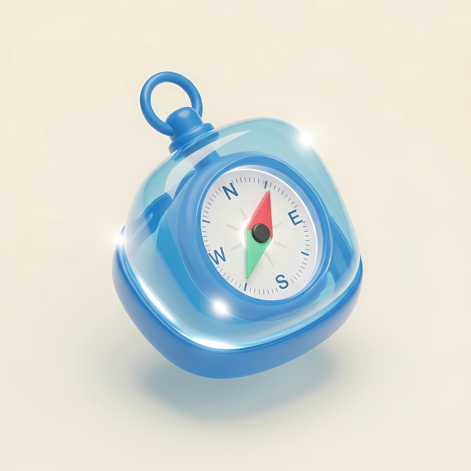 A modern, glossy blue compass illustration with a sleek design, perfect for navigation-themed projects or creative concepts.