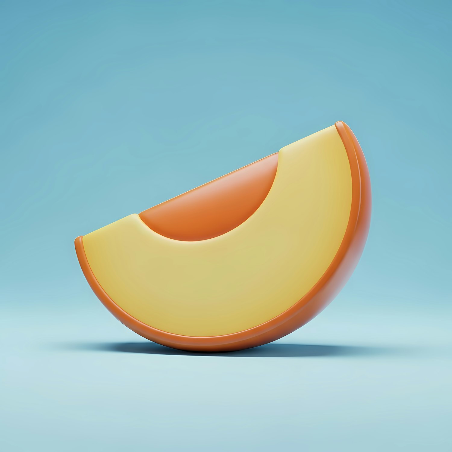 Stylized 3D slice of fruit with orange and yellow tones on a clean blue background, perfect for modern design inspiration.