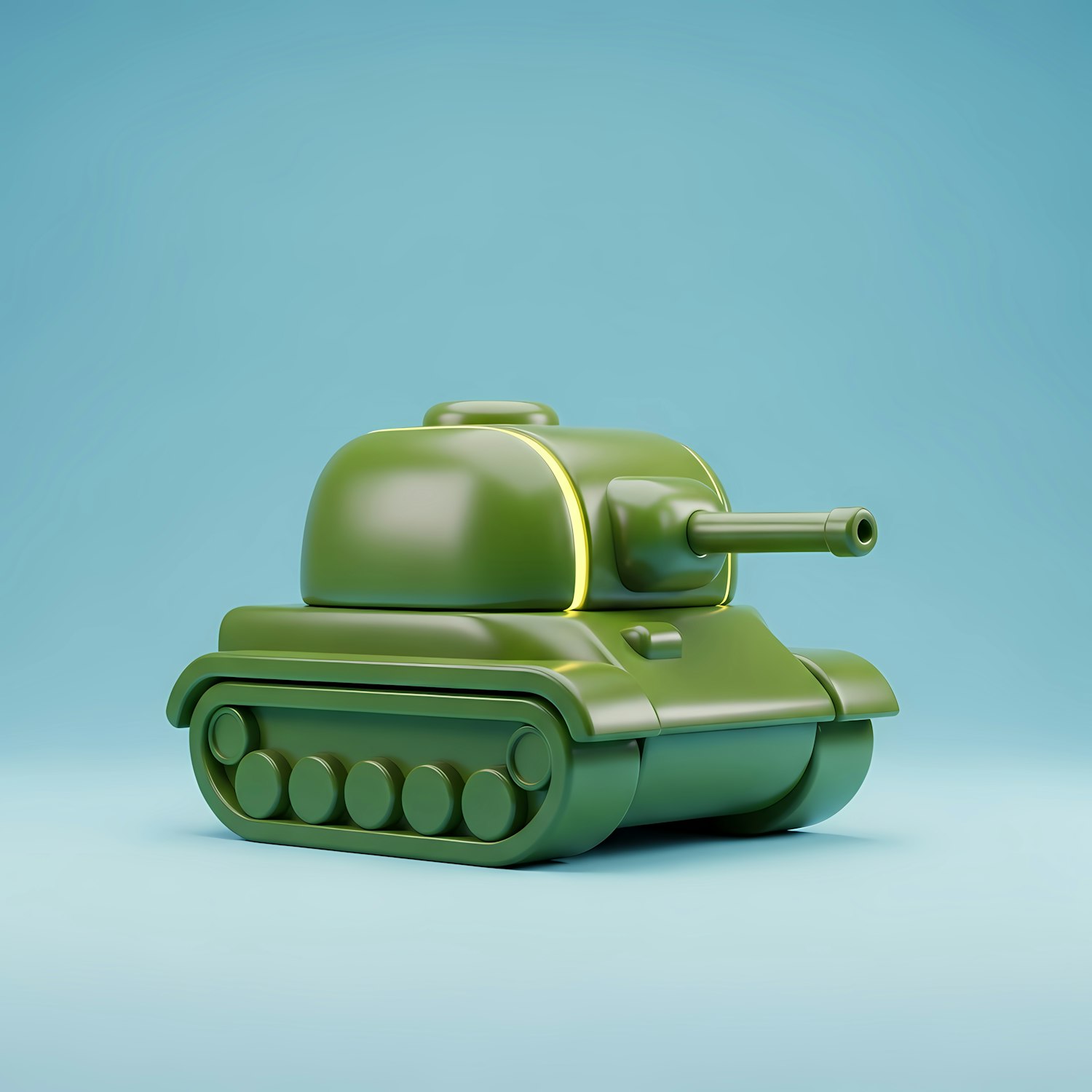 A cute, stylized green tank with a toy-like design on a light blue background, perfect for playful or creative projects.