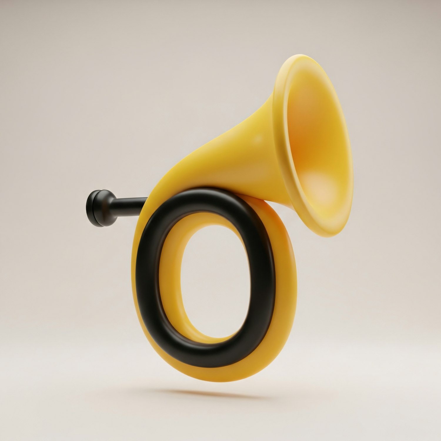 A 3D-rendered yellow and black horn with a sleek, modern design on a neutral background.