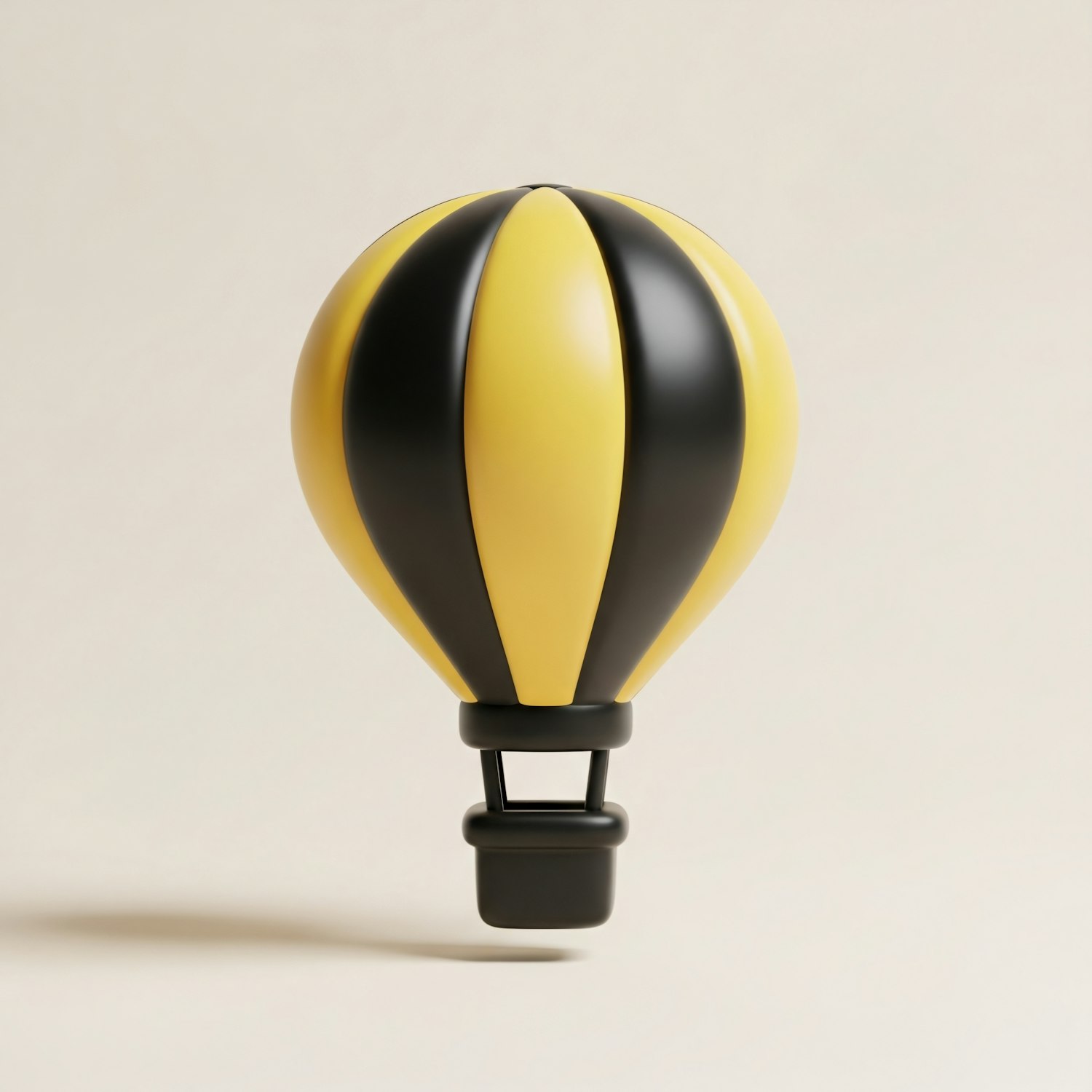 A minimalistic 3D hot air balloon with yellow and black stripes, set against a neutral background for a clean and modern look.