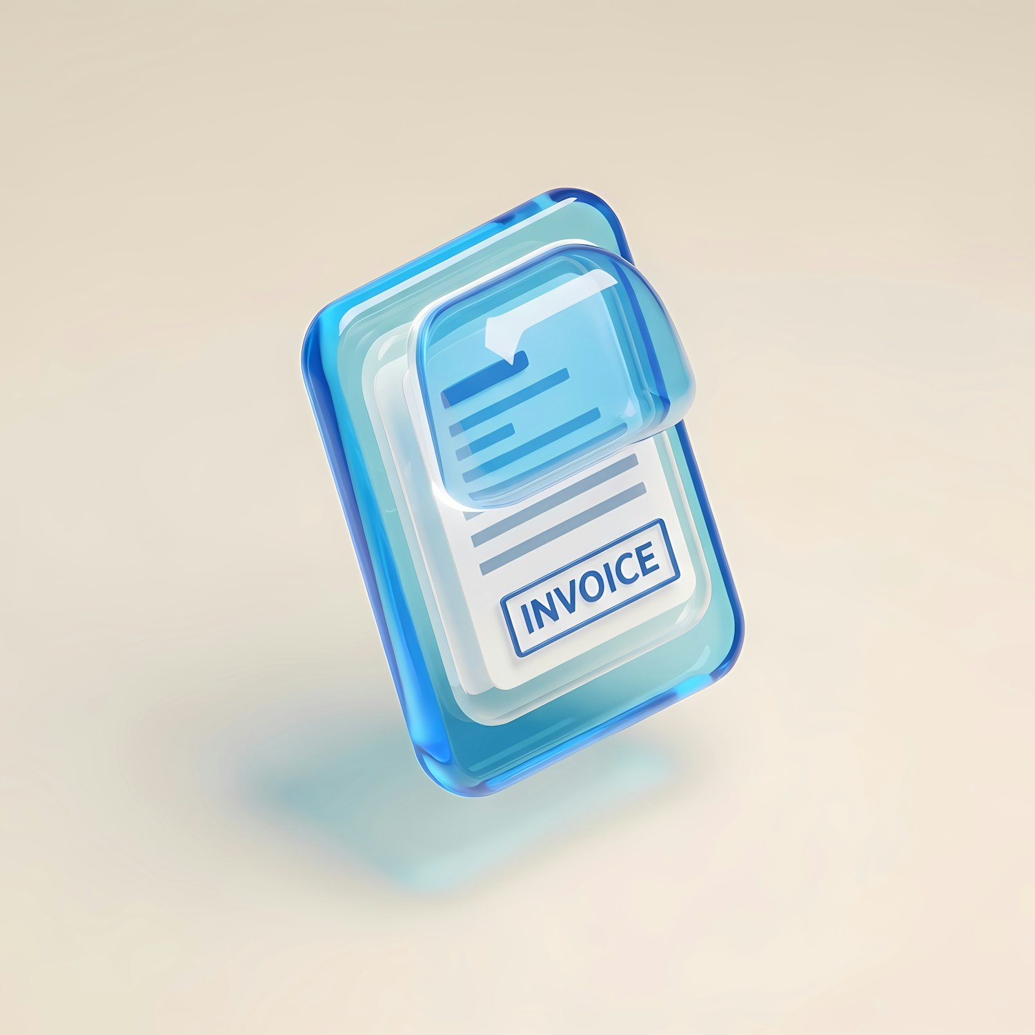 Modern 3D illustration of a transparent blue invoice icon with a sleek design, perfect for financial or business-related visuals.