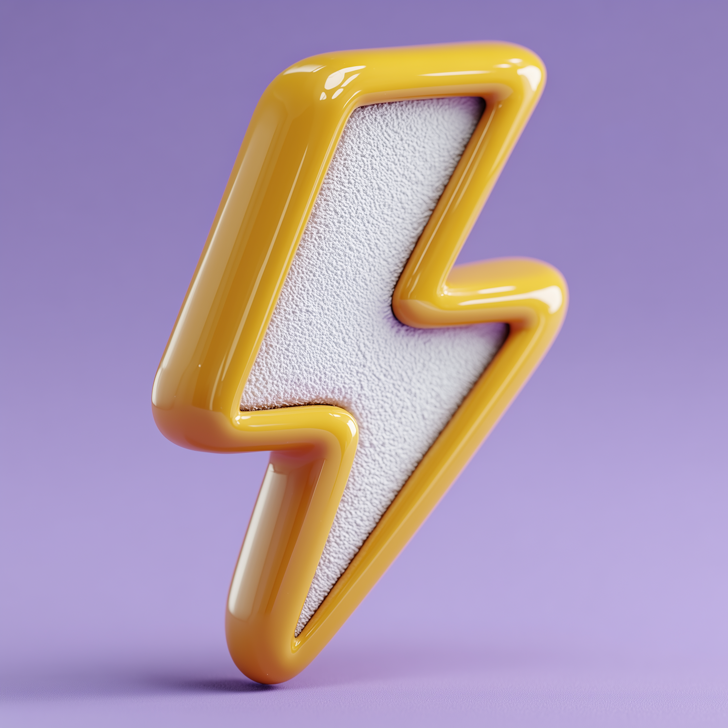 A 3D-rendered yellow lightning bolt with a textured white interior on a purple background, showcasing vibrant colors and modern design.