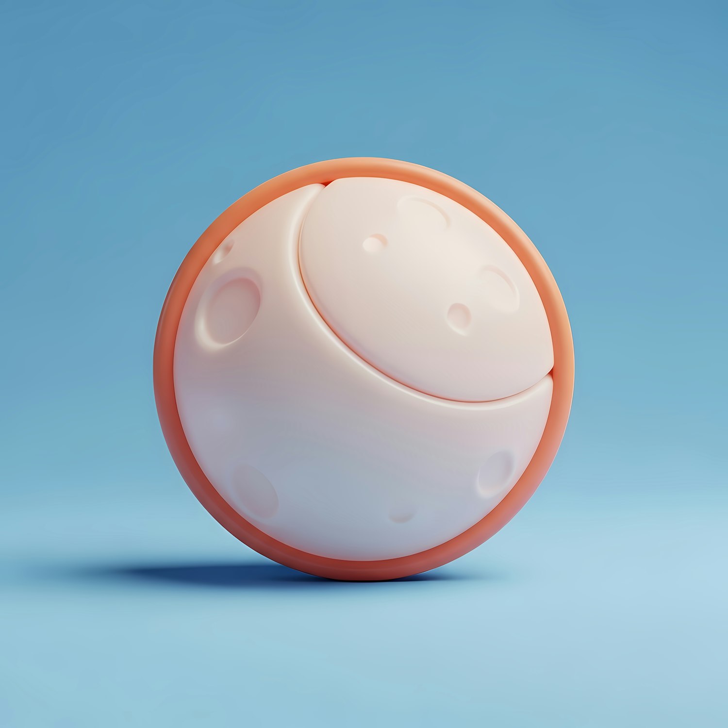 A 3D-rendered sphere with a moon-like texture and orange accents, set against a clean blue background. Minimalistic and modern design.