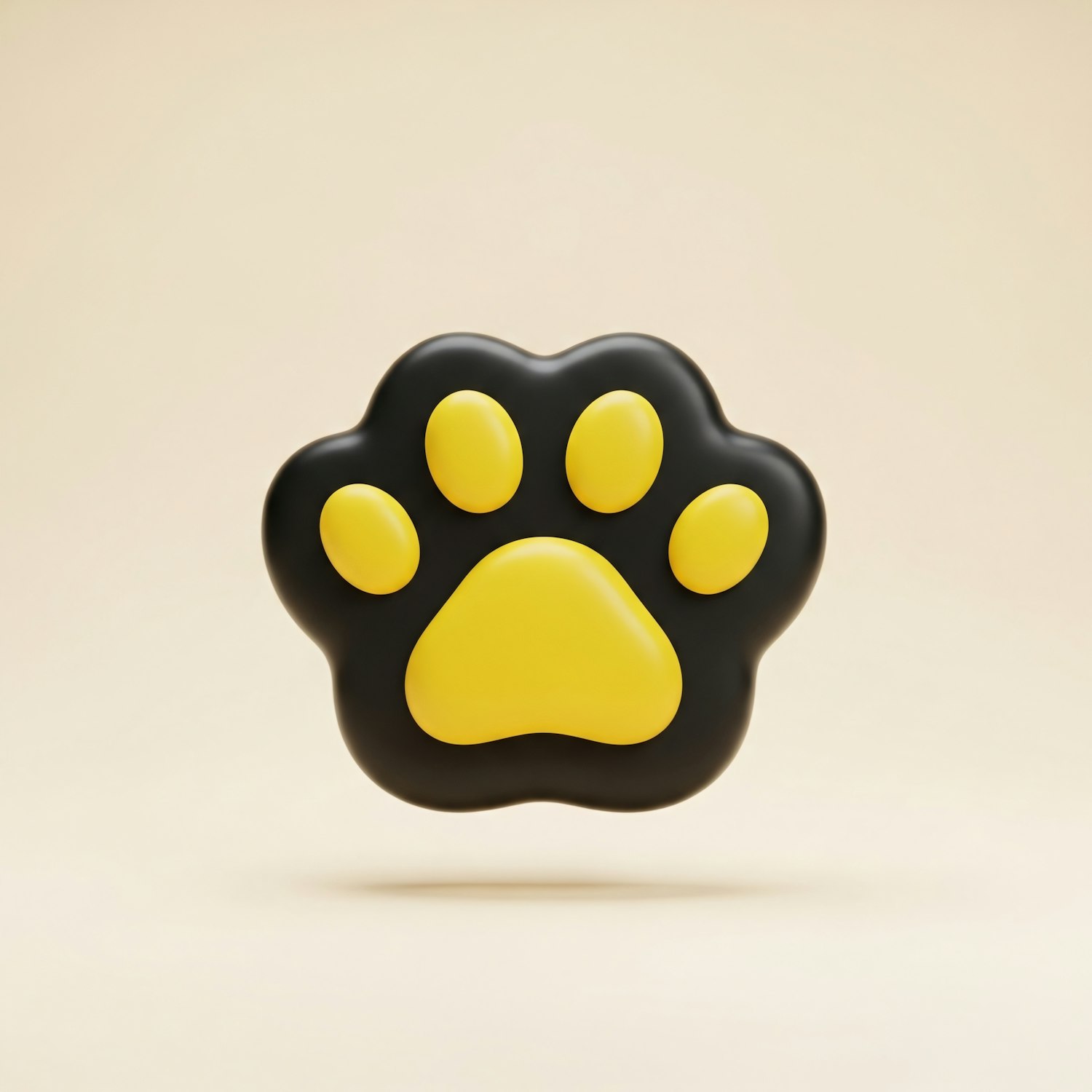 A 3D-rendered paw print with a black outline and yellow pads, set against a soft beige background, creating a clean and modern look.