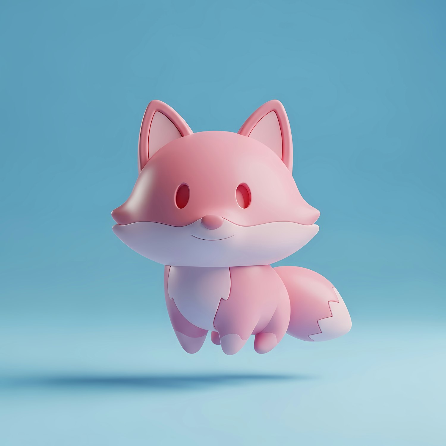 Adorable 3D pink fox with a white belly and tail tip, set against a light blue background. Perfect for cute and playful designs.