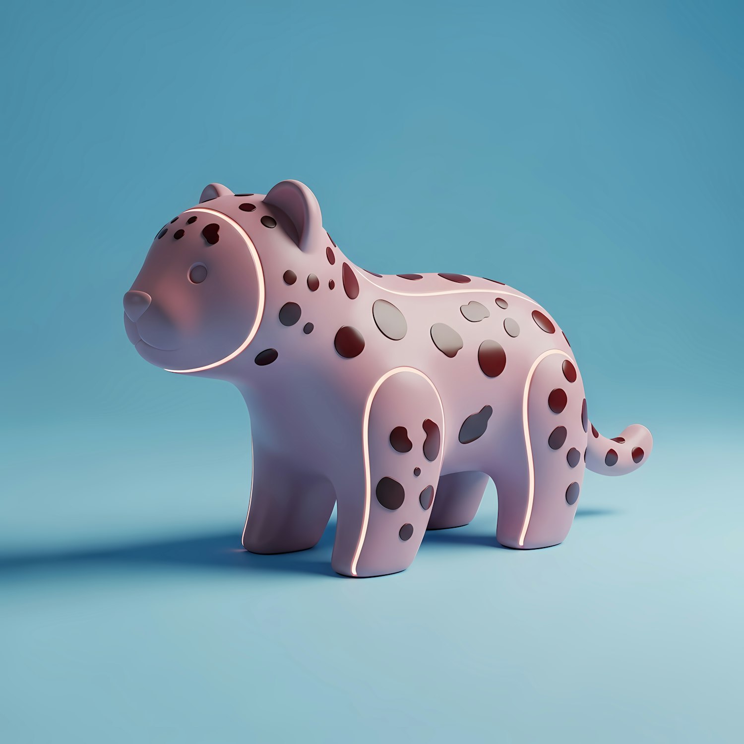 A cute 3D pink leopard figure with dark spots, set against a light blue background, showcasing a playful and modern design.