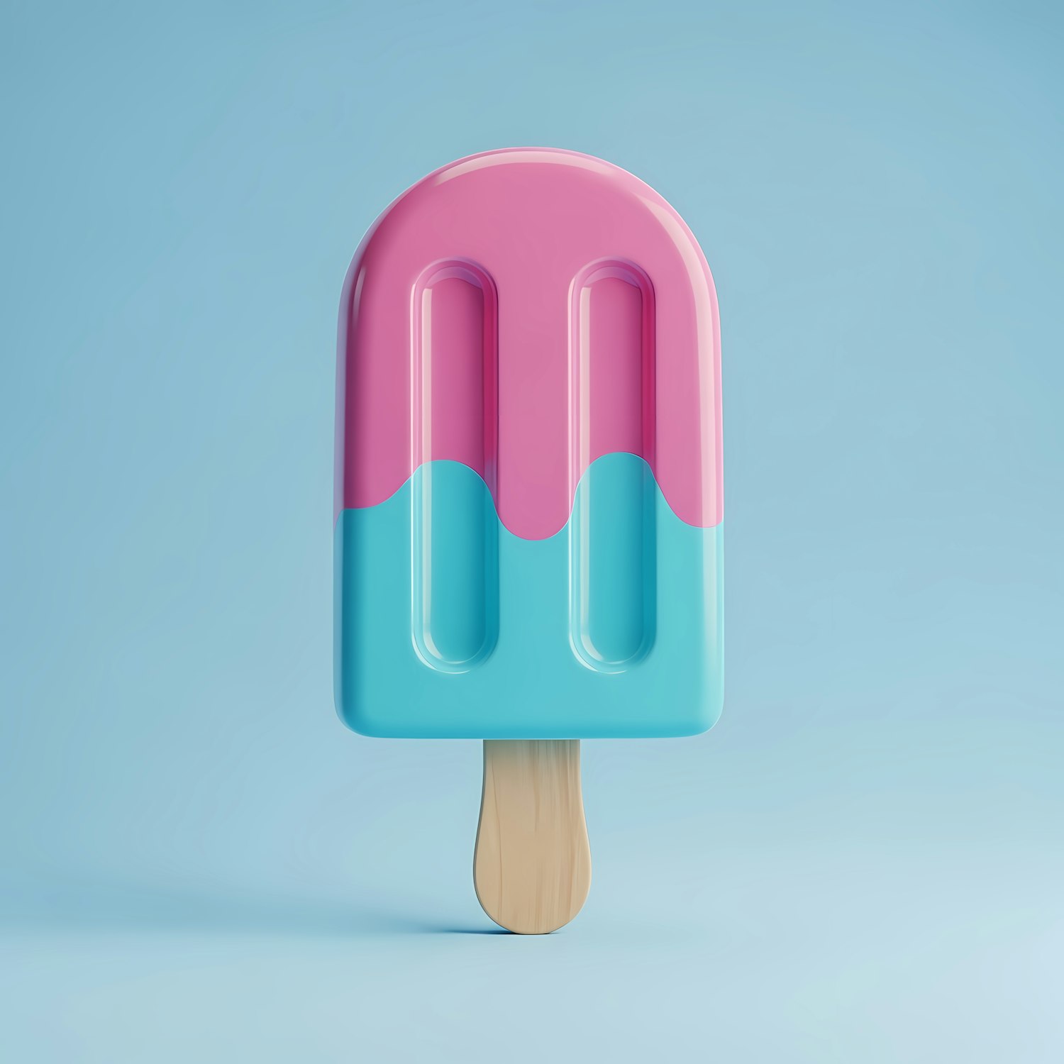 Vibrant 3D popsicle design with pink and blue colors on a light blue background, perfect for summer-themed visuals.