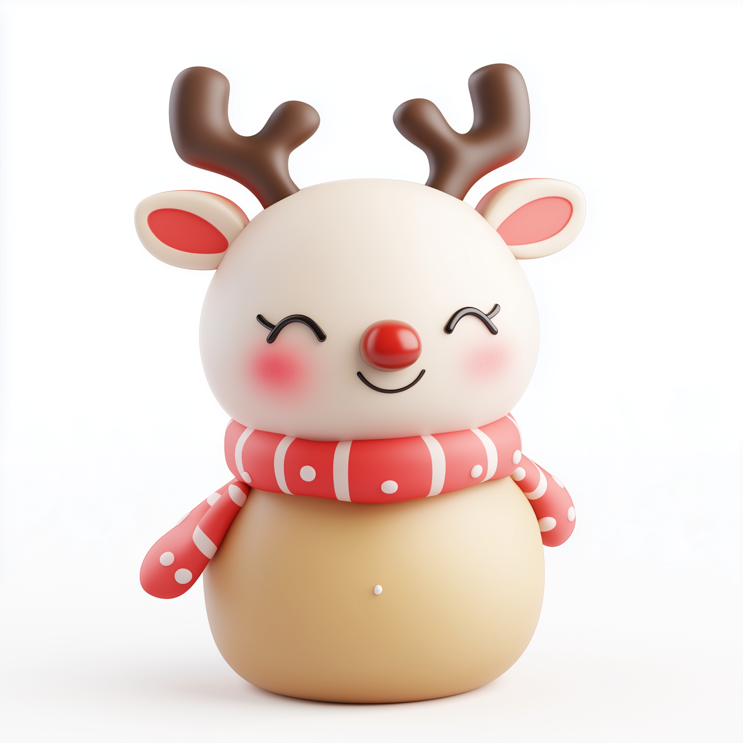 Adorable cartoon reindeer with rosy cheeks, red nose, and striped scarf. Perfect for holiday-themed designs and decorations.