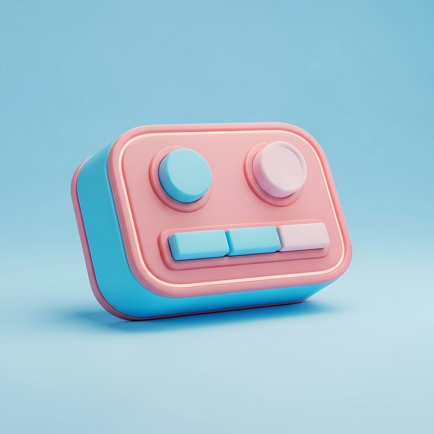 Cute 3D robot face with pastel pink and blue colors on a light blue background, perfect for tech or design themes.