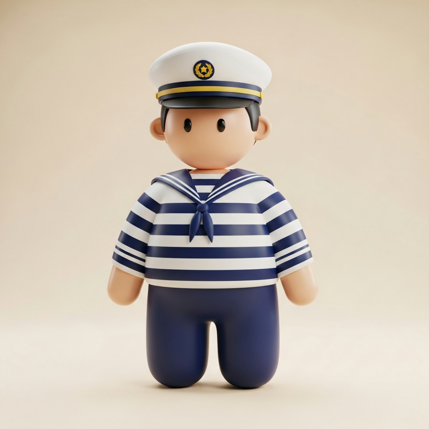 A cute 3D sailor character with a striped shirt and hat, set against a neutral background, perfect for nautical-themed designs.