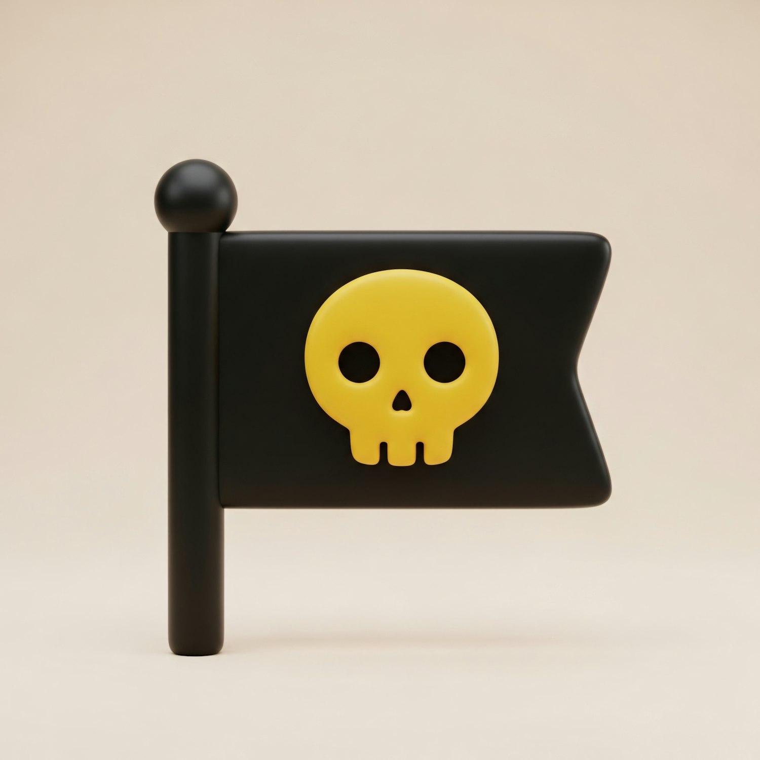 A minimalistic black flag with a yellow skull emblem, set against a neutral background, showcasing a clean and bold design.