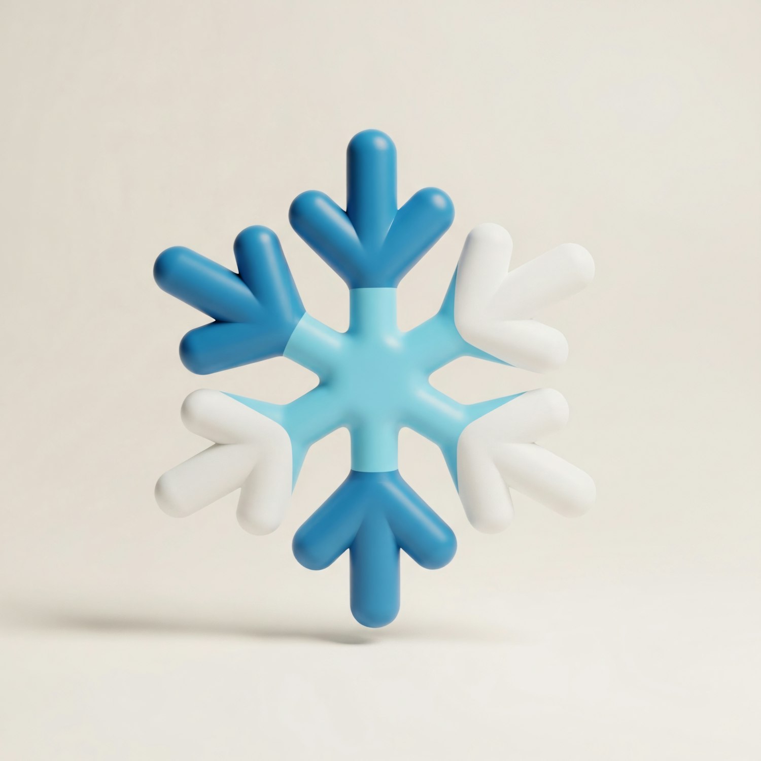 A modern, colorful snowflake design with blue and white arms, perfect for winter-themed projects or decorations.