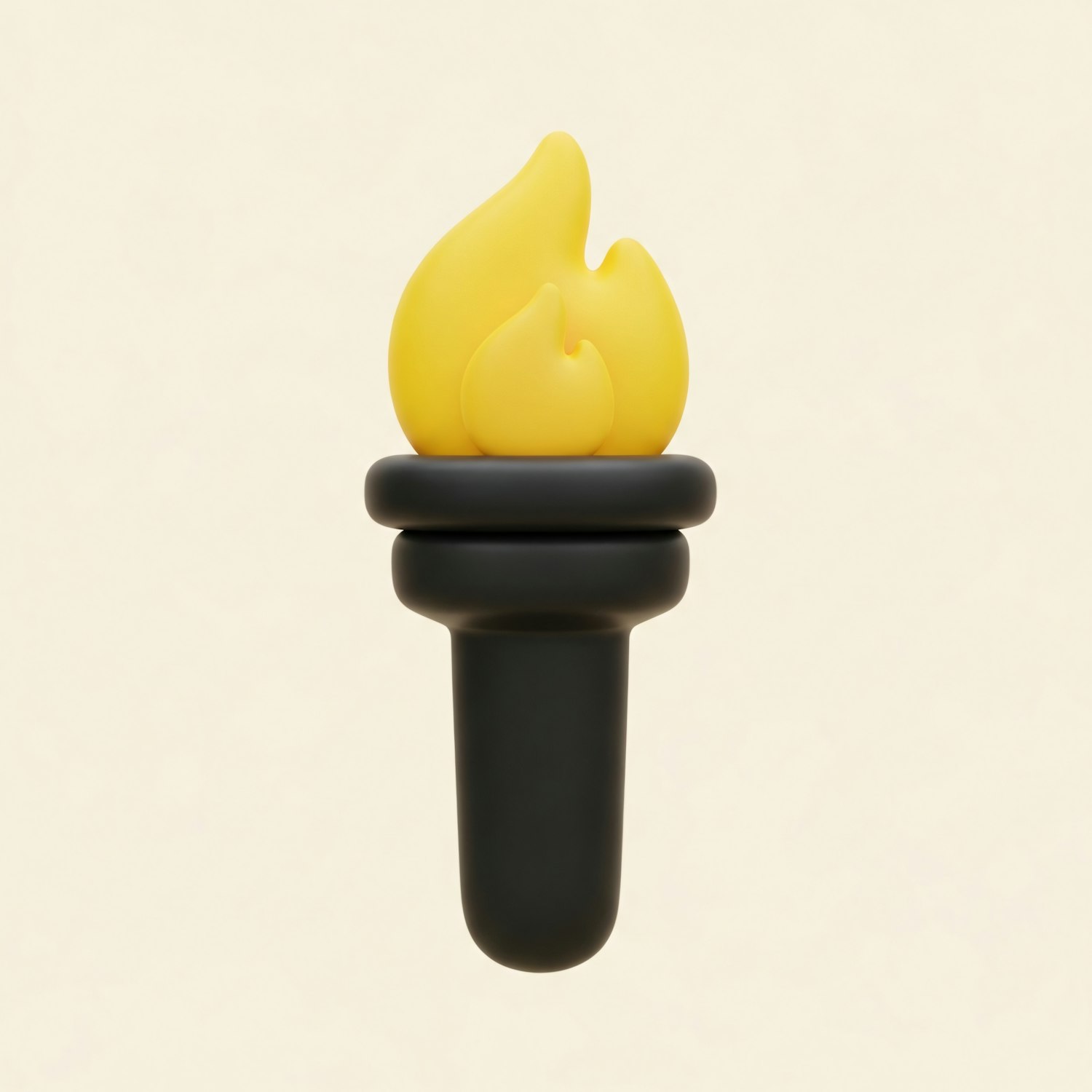 A 3D-rendered torch with a black handle and a bright yellow flame, set against a plain beige background.