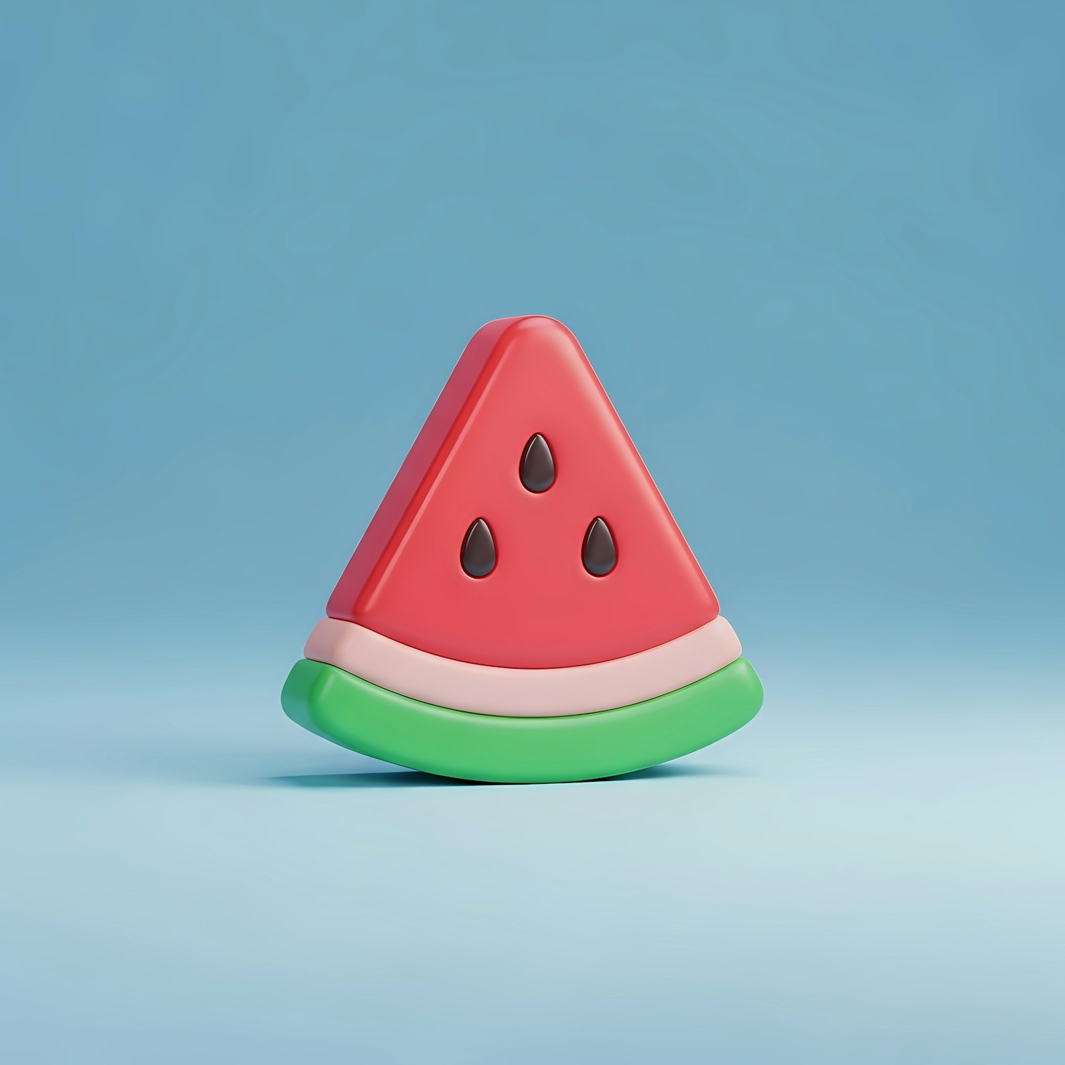 A cute 3D watermelon slice with a glossy finish, set against a light blue background. Perfect for summer or playful designs.