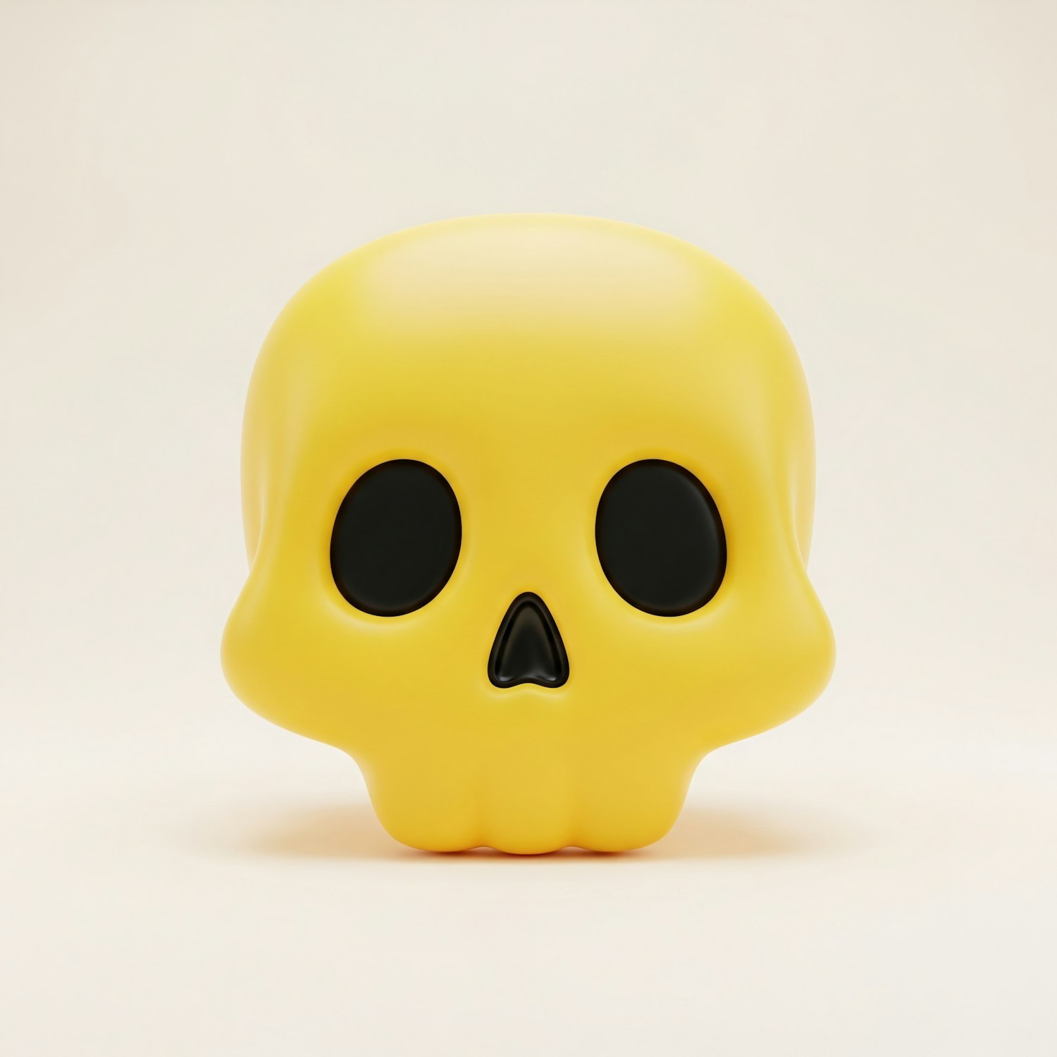 A bright yellow cartoon-style skull with black eye sockets and a glossy finish, set against a neutral background.