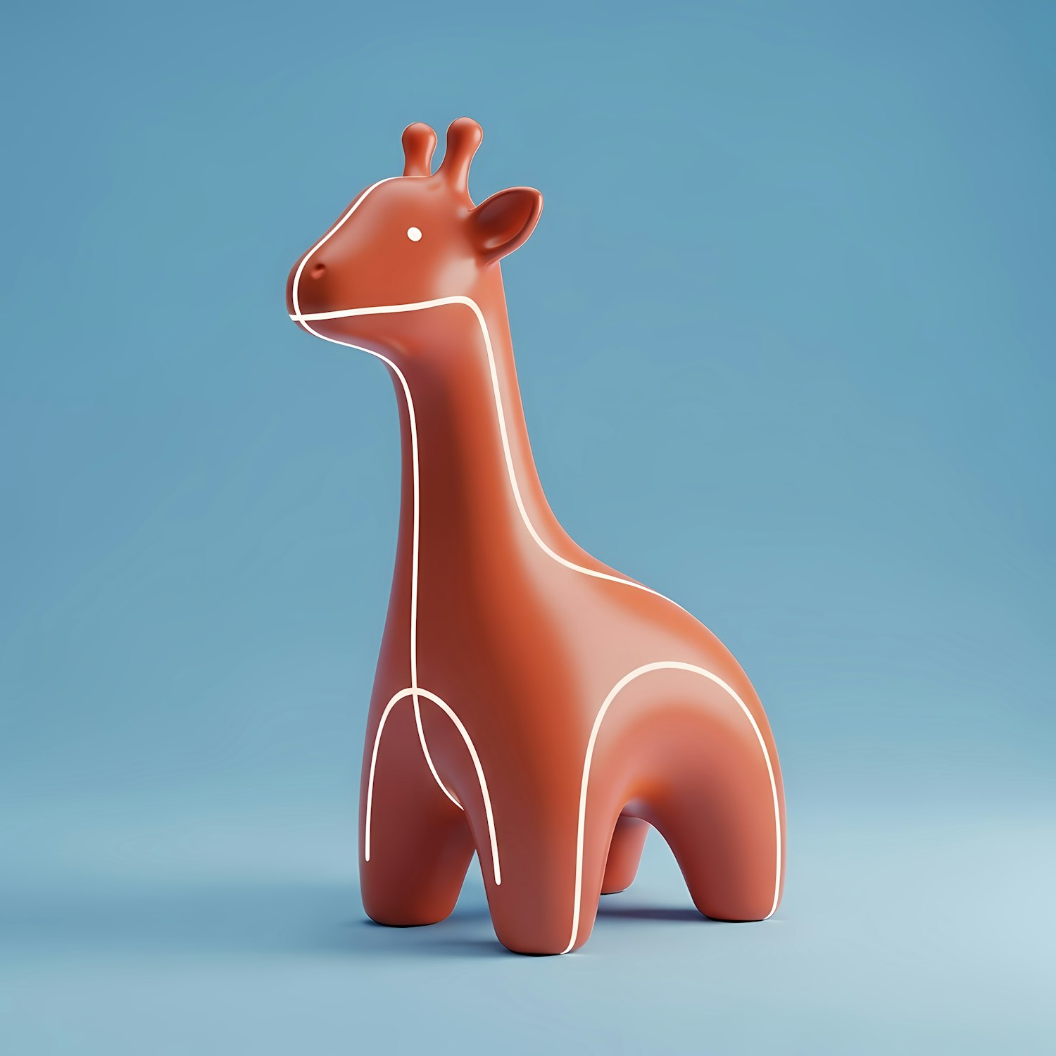 A modern 3D-rendered giraffe figurine in terracotta with white contour lines, set against a soft blue background.