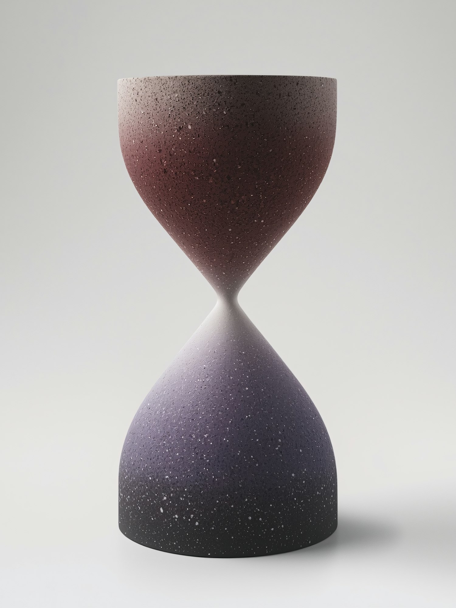 A textured hourglass-shaped object with a gradient from maroon to purple, set against a neutral background for a modern aesthetic.