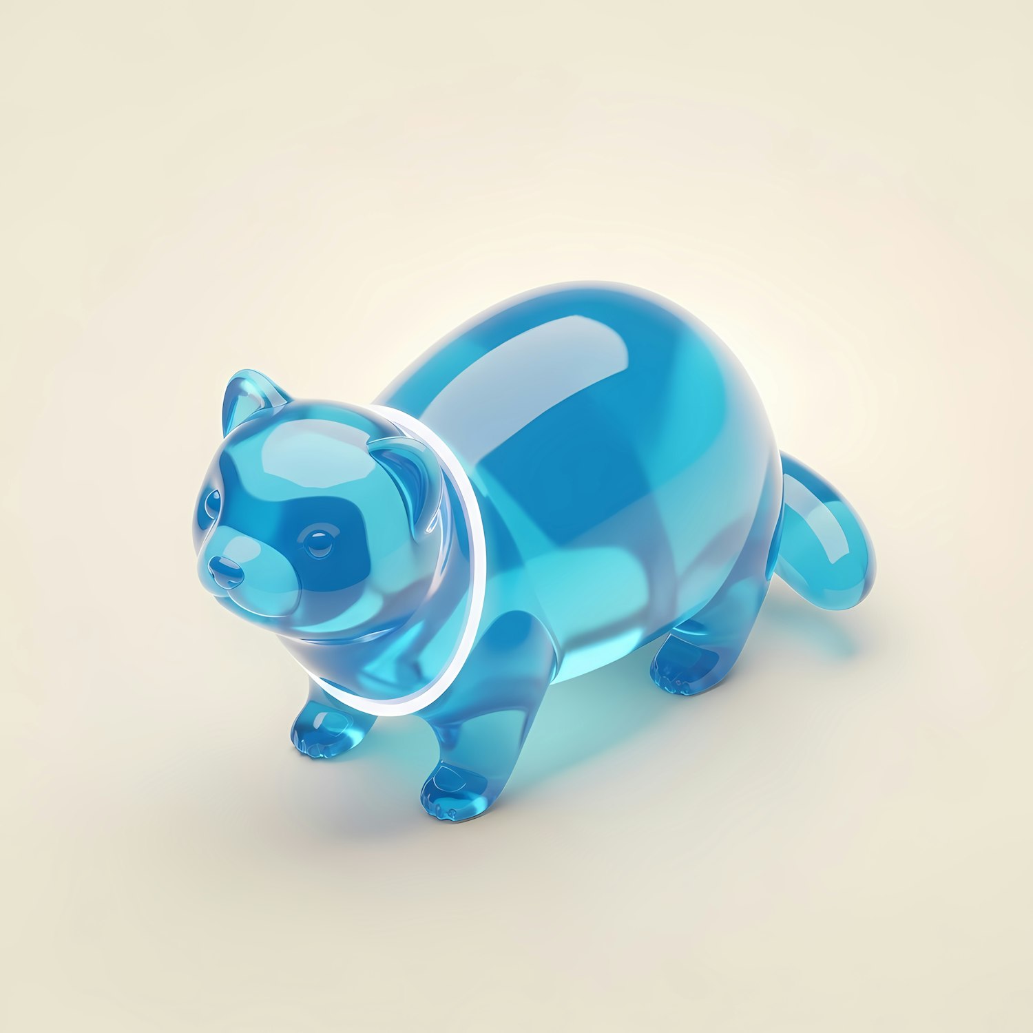 A glossy blue 3D figurine of a small animal, resembling a ferret, with a smooth and translucent design on a light background.