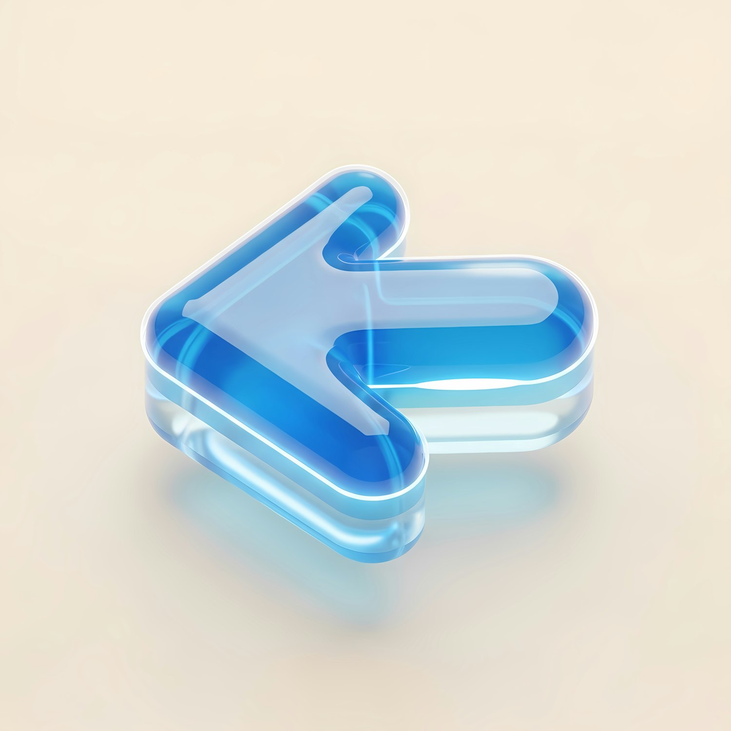 A sleek 3D translucent blue arrow pointing left on a soft beige background, showcasing a modern and minimalistic design.