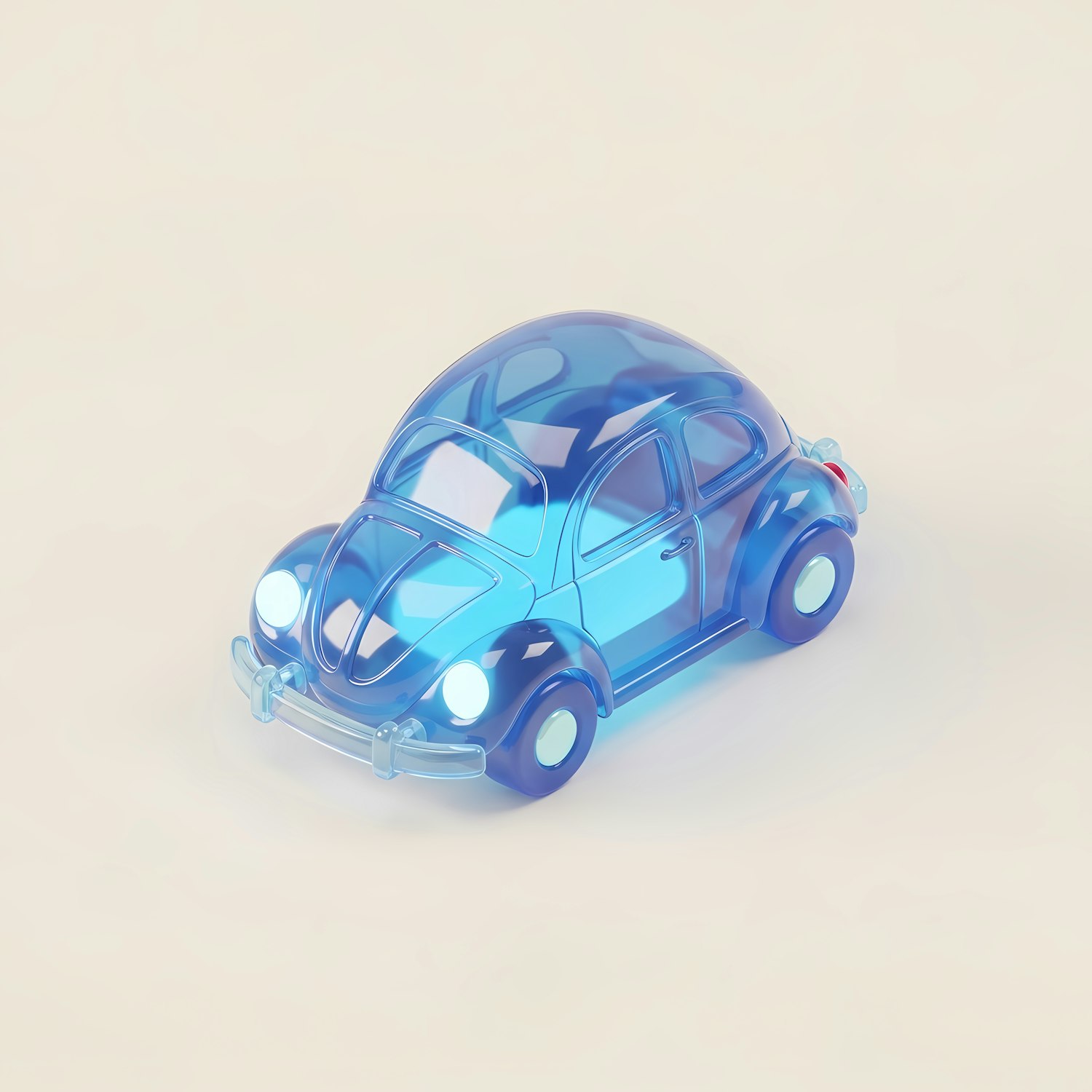 A 3D-rendered translucent blue vintage car model on a soft beige background, showcasing a sleek and artistic design.